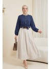 بلوزة قميص عتيقة مطرزة -اللون البيج