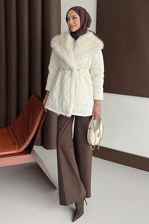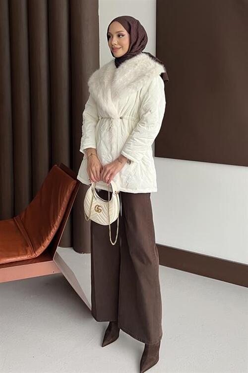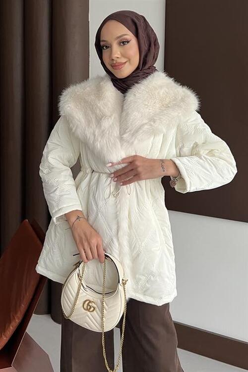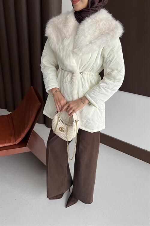 معلومات عن القماش إنها مصنوعة من القماش المبطن. تفاصيل طوق الفرو، جيوب مزدوجة، بطانة داخلية، حزام قابل للإزالة.