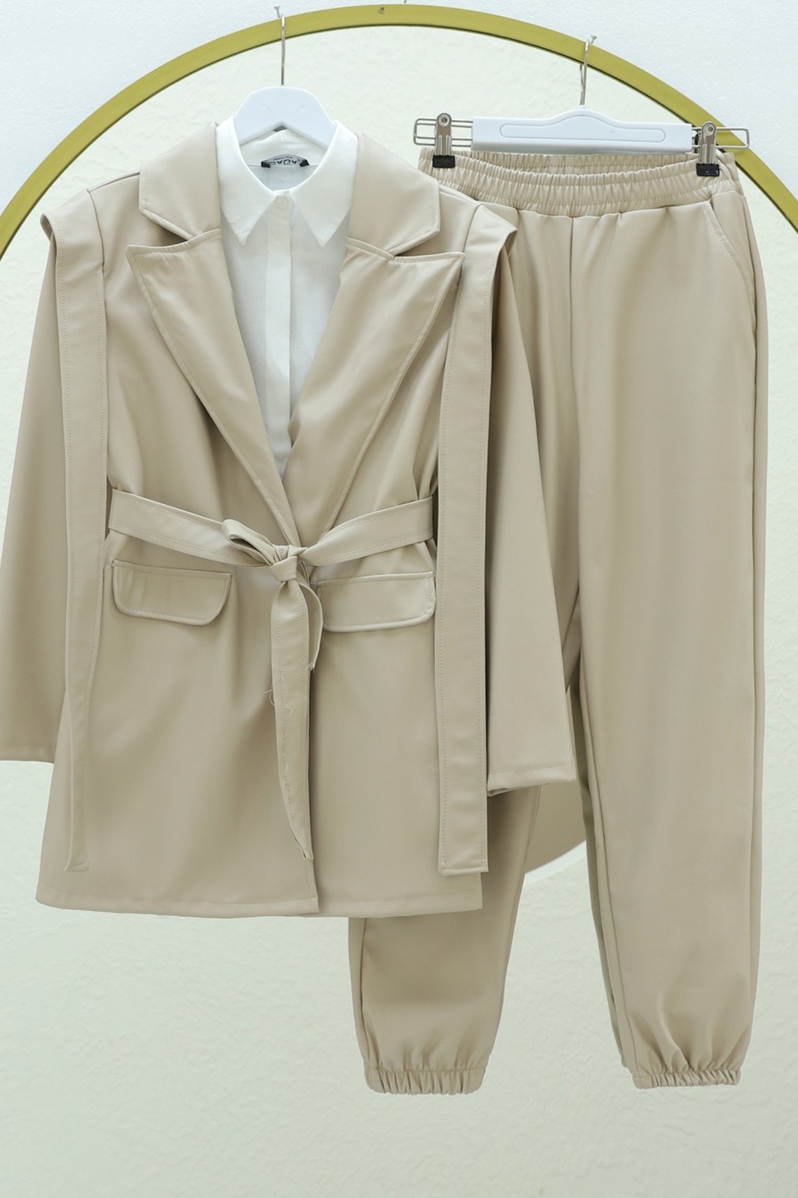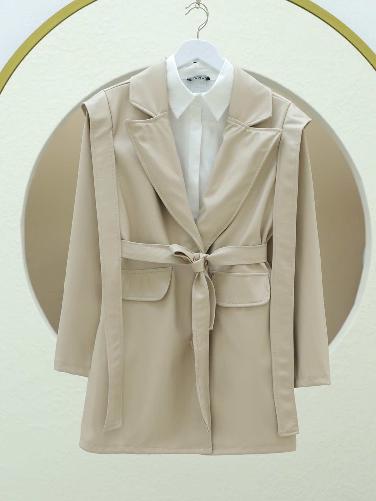 أبرز أناقتك مع جاكيت الجلد المزود بتفاصيل الأكتاف والجيوب والحزام. مع تصميم عصري وتفاصيل لافتة، يوفر هذا الجاكيت إطلالة أنيقة. مثالي للاستخدام اليومي والمناسبات الخاصة، يكمل إطلالتك بخامته الجلدية عالية الجودة وتفاصيل الحزام الأنيقة.