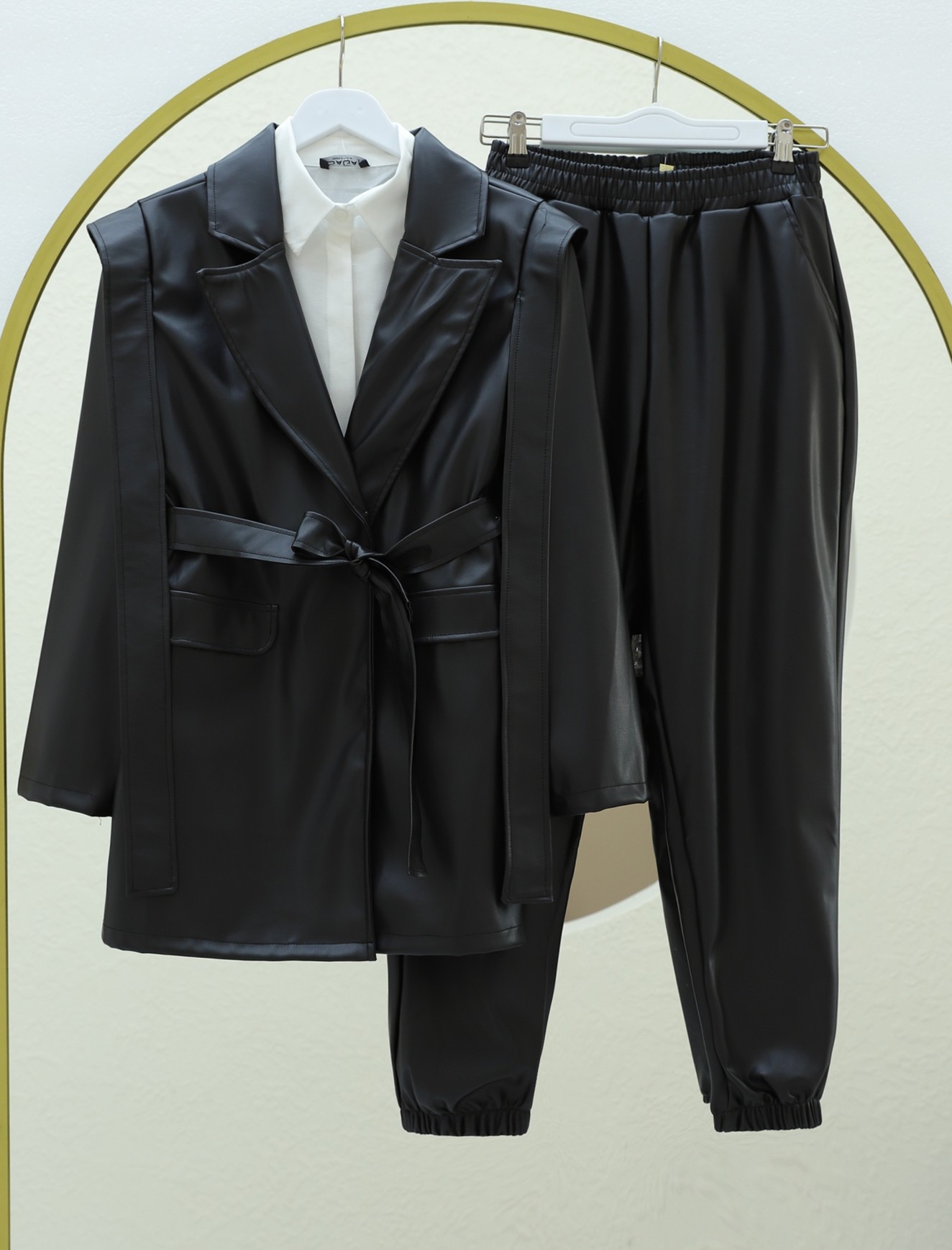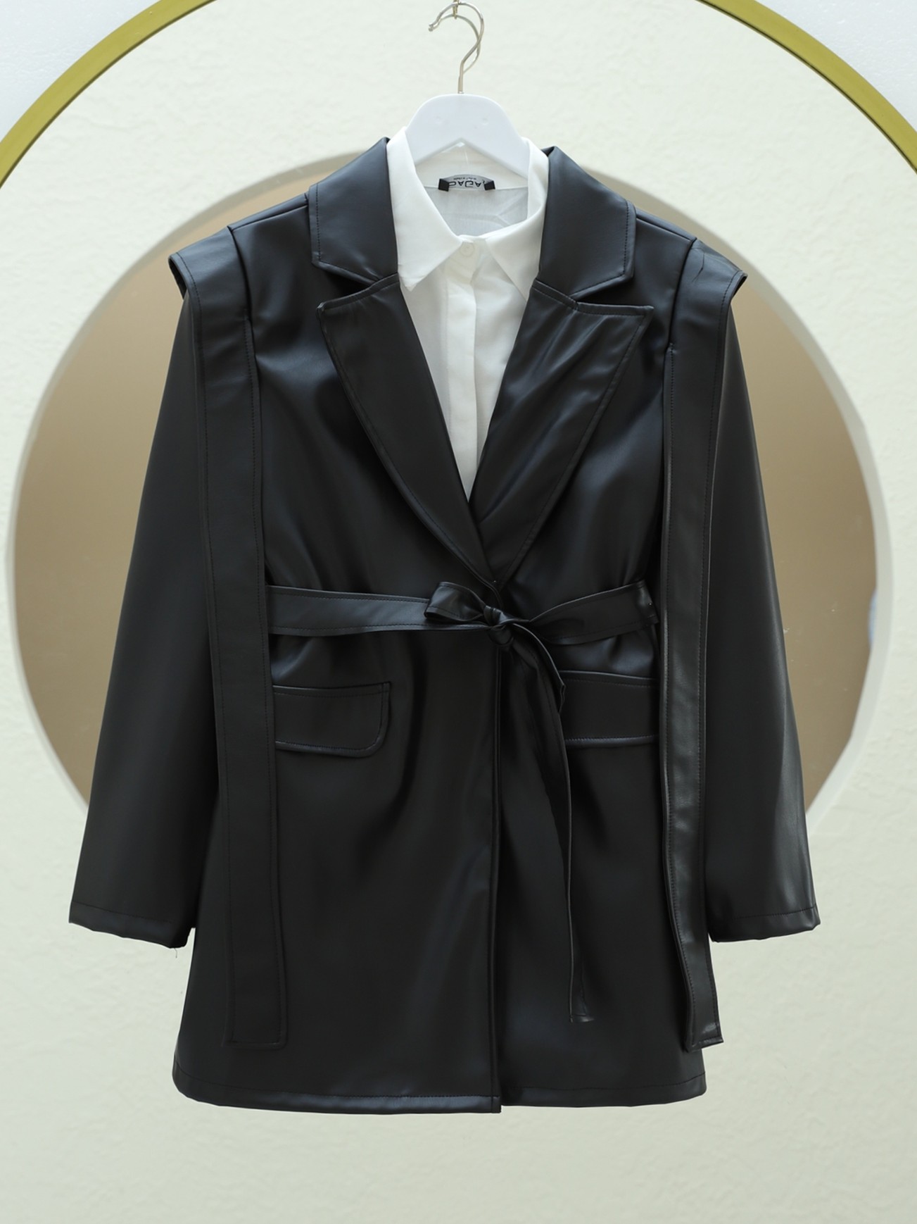 أبرز أناقتك مع جاكيت الجلد المزود بتفاصيل الأكتاف والجيوب والحزام. مع تصميم عصري وتفاصيل لافتة، يوفر هذا الجاكيت إطلالة أنيقة. مثالي للاستخدام اليومي والمناسبات الخاصة، يكمل إطلالتك بخامته الجلدية عالية الجودة وتفاصيل الحزام الأنيقة.