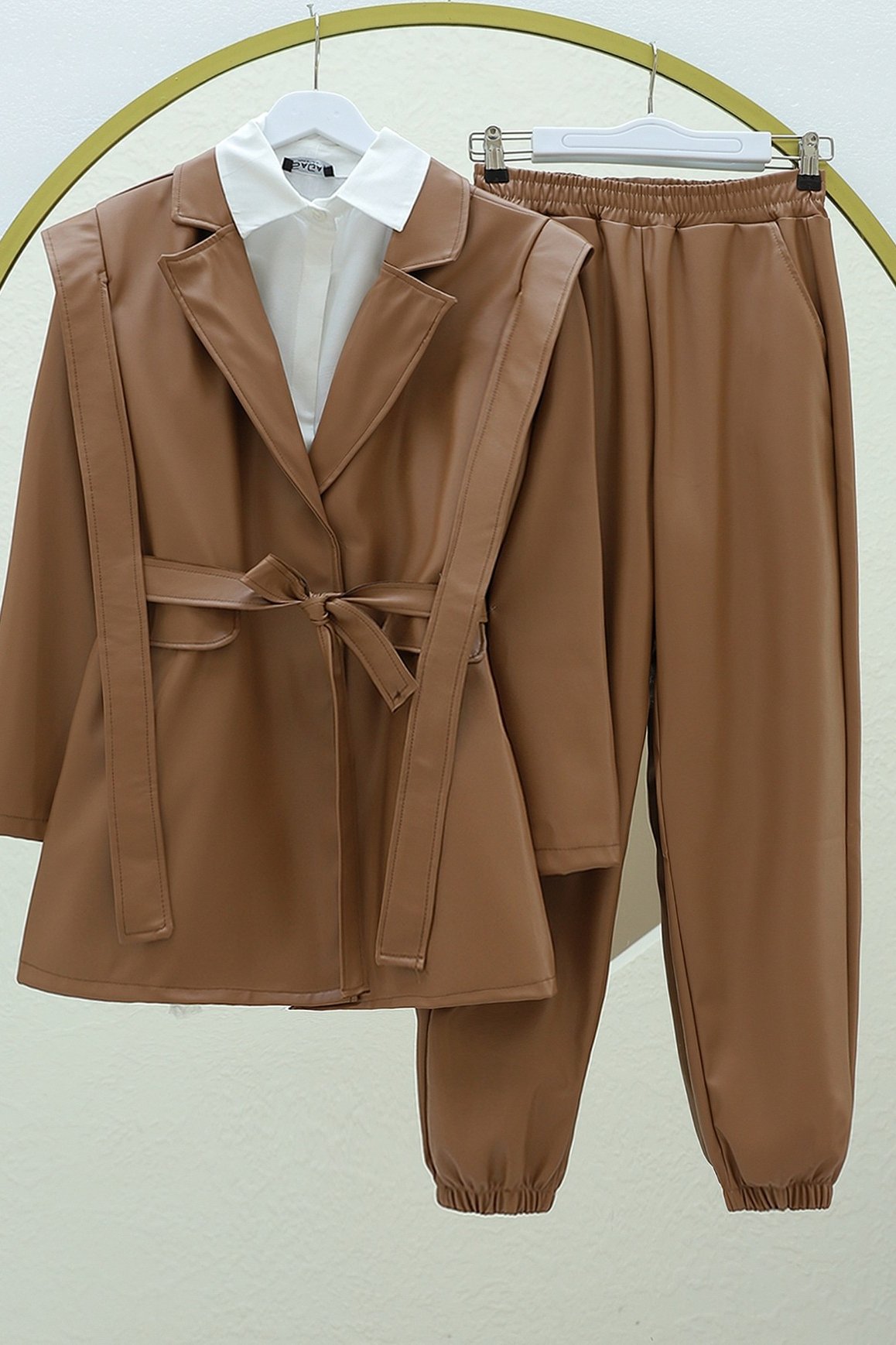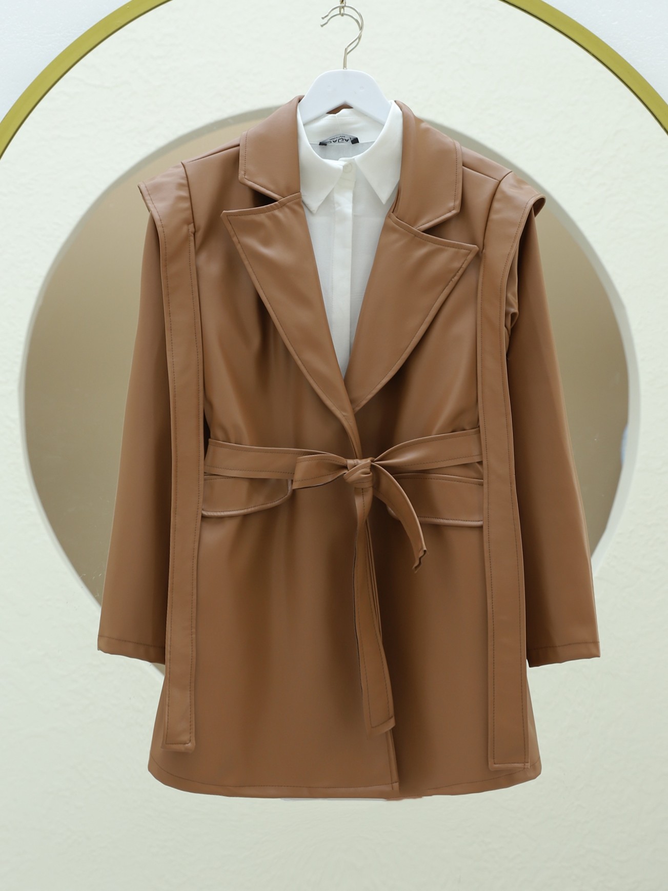 أبرز أناقتك مع جاكيت الجلد المزود بتفاصيل الأكتاف والجيوب والحزام. مع تصميم عصري وتفاصيل لافتة، يوفر هذا الجاكيت إطلالة أنيقة. مثالي للاستخدام اليومي والمناسبات الخاصة، يكمل إطلالتك بخامته الجلدية عالية الجودة وتفاصيل الحزام الأنيقة.