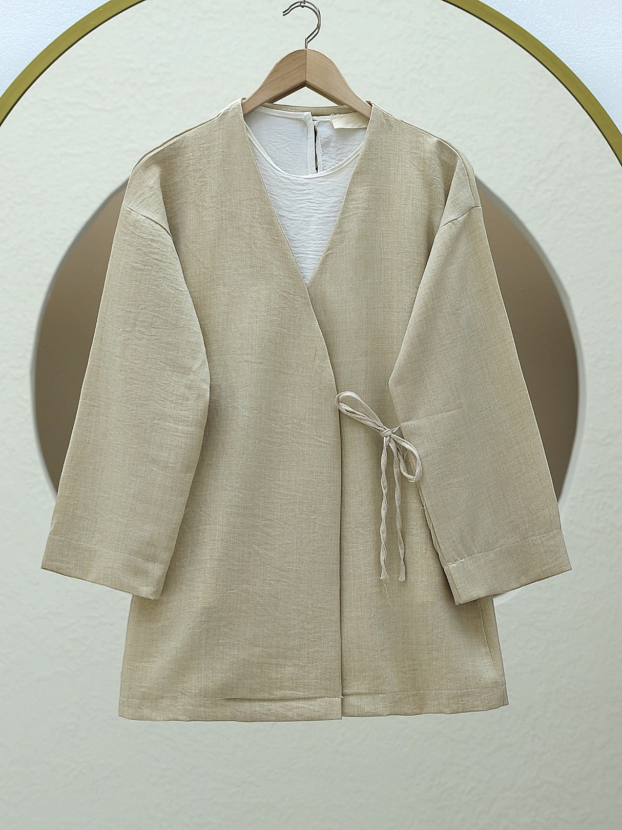 كيمونو من الكتان برباط جانبي -اللون البيج