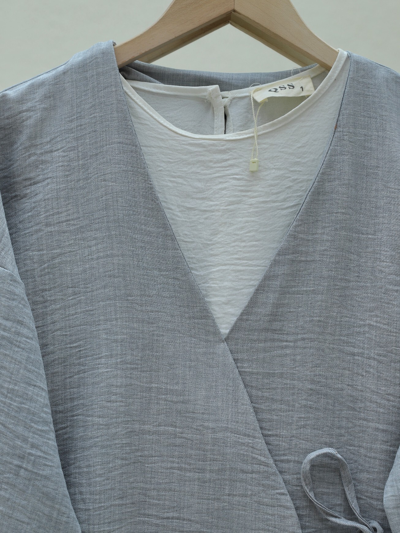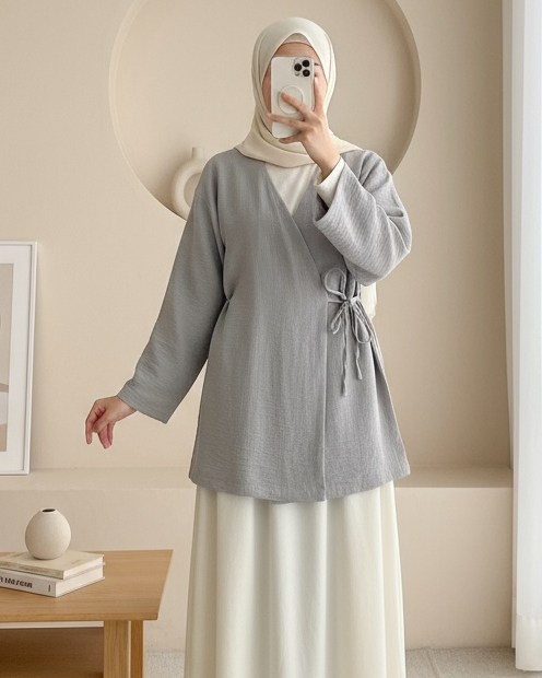 كيمونو من الكتان برباط جانبي -اللون الرمادي