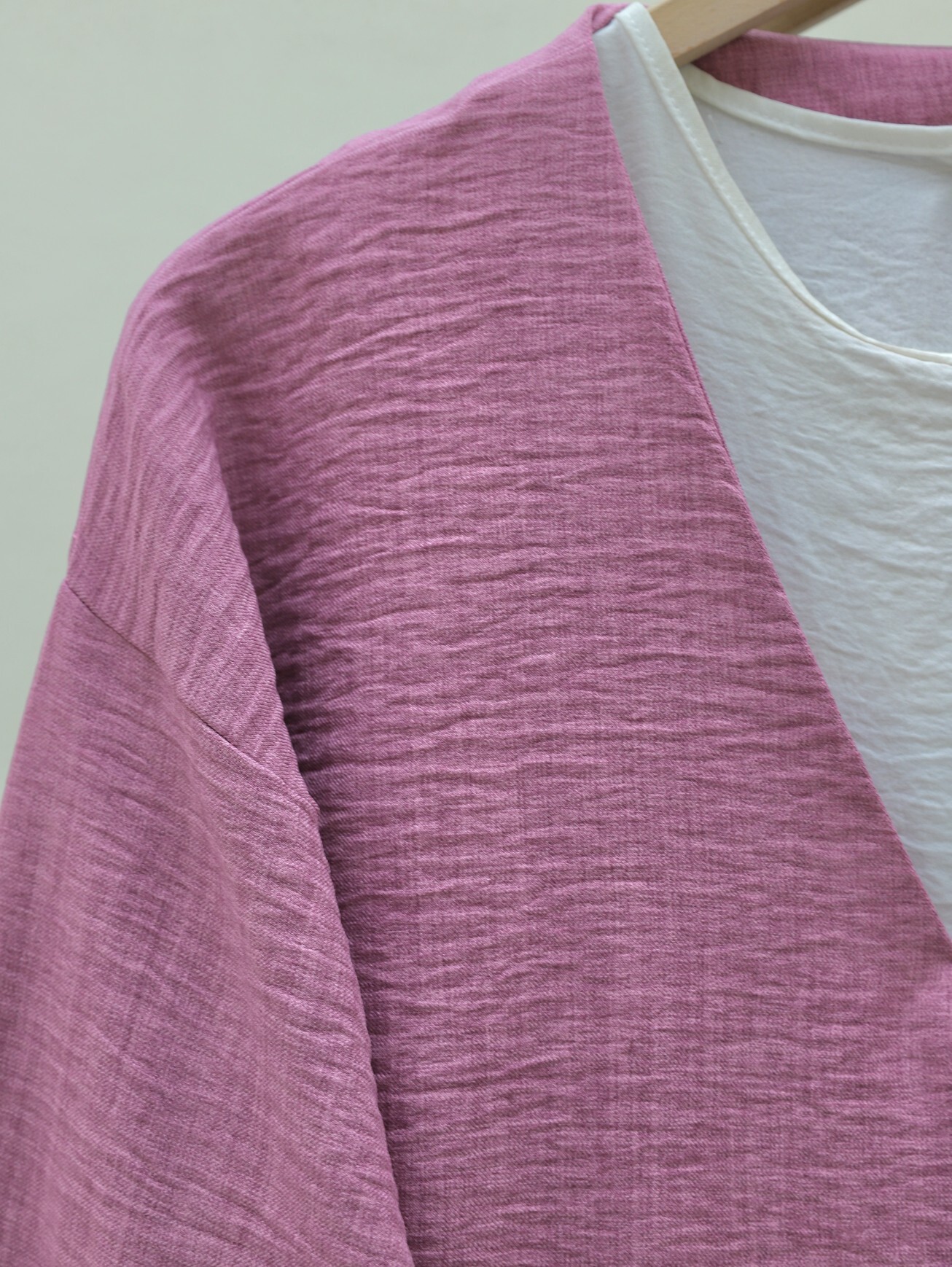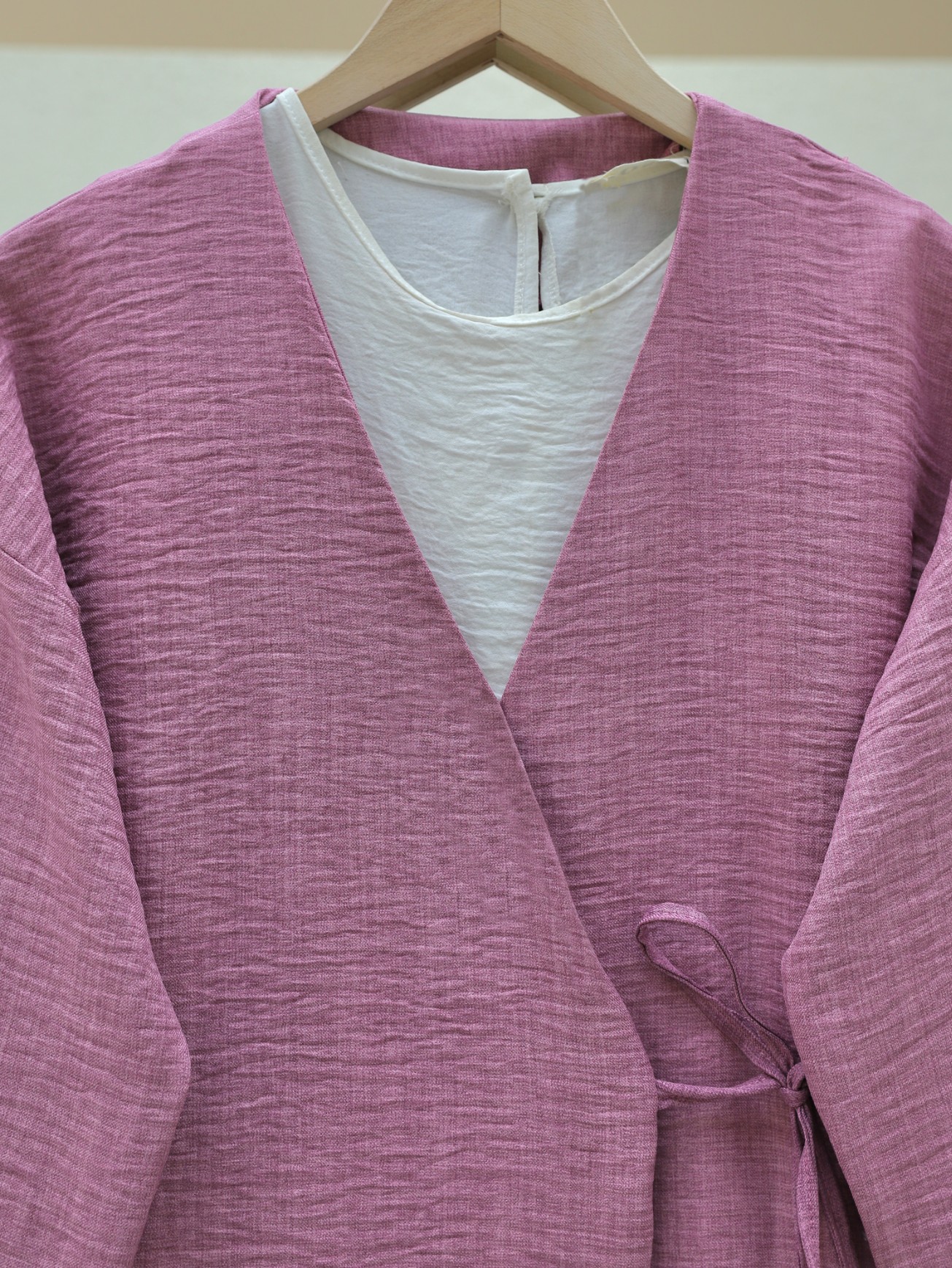 كيمونو من الكتان برباط جانبي -لون الكرز