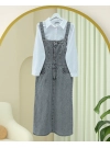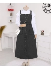 أفرول جينز مع تفاصيل شرابة على التنورة وأزرار أمامية وجيوب -جليدي