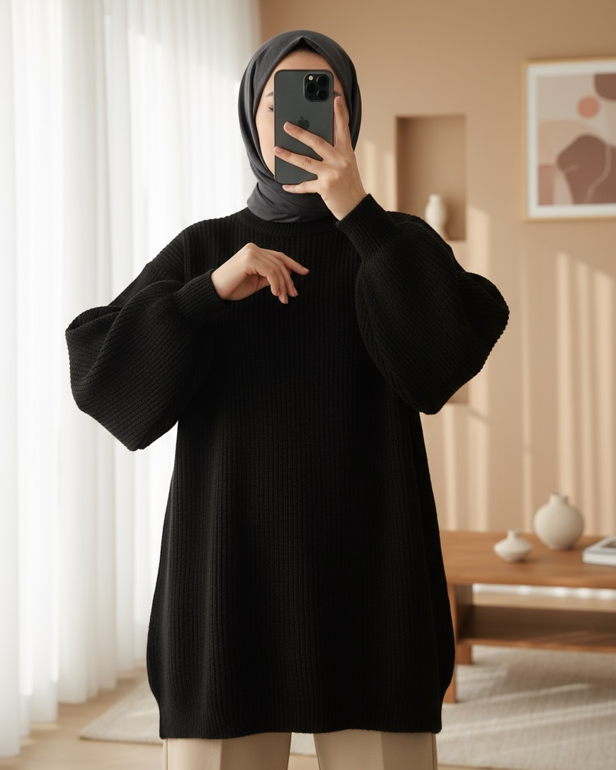 يُعد نموذج سترة التريكو الخاص بنا ، والذي يتميز بنصف رقبة وأكمام بالون وأساور مطاطية ، من بين أكثر السترات الصوفية تريكوًا عصرية.