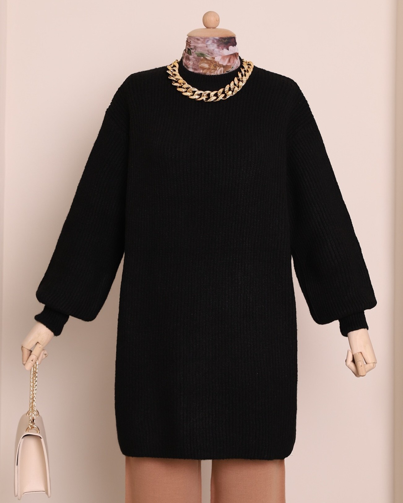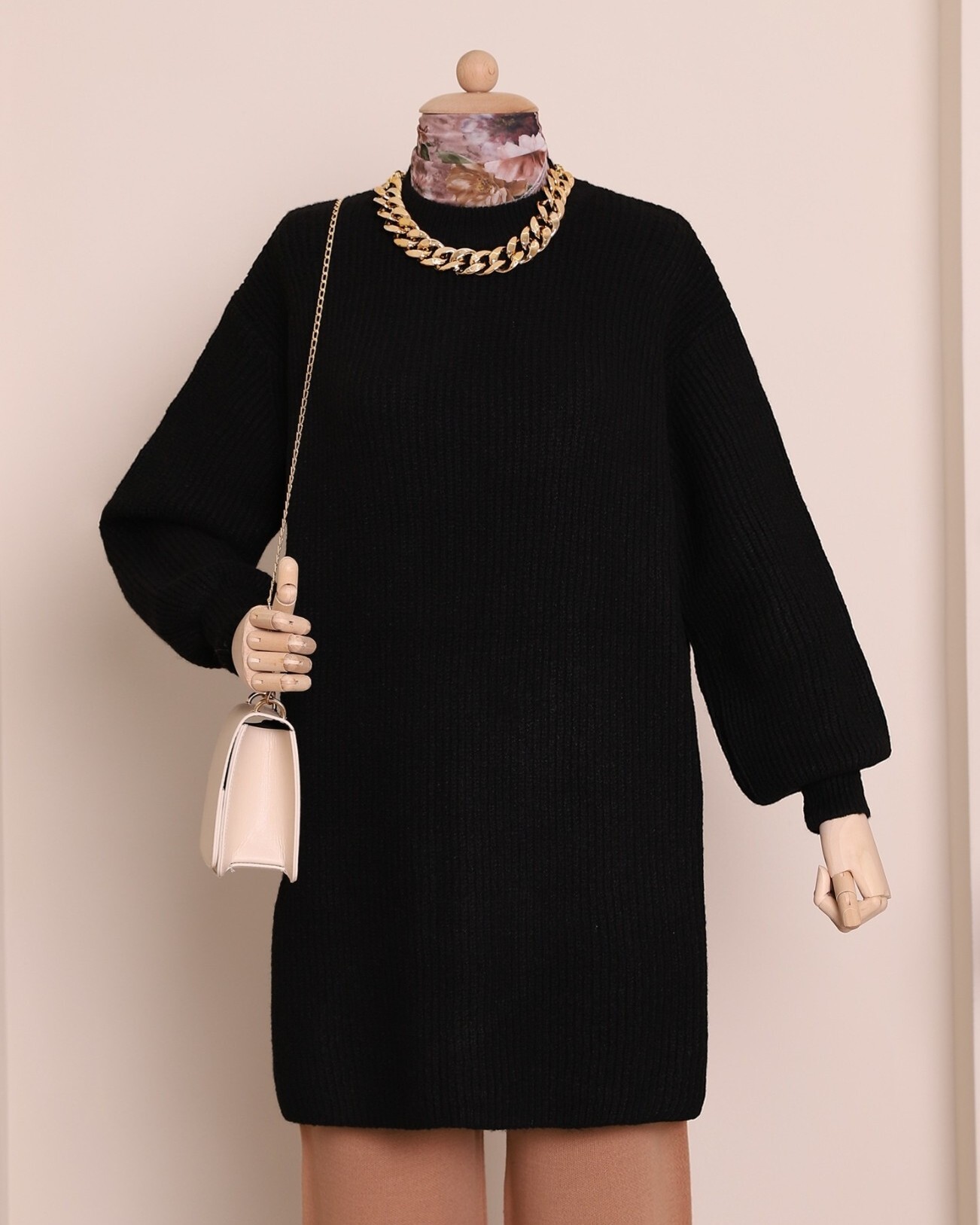 تونيك حرير بأكمام بالون -أسود - 109-3647-R01