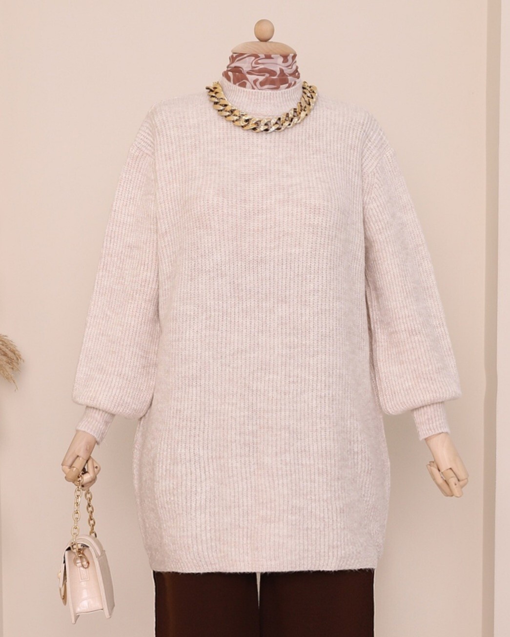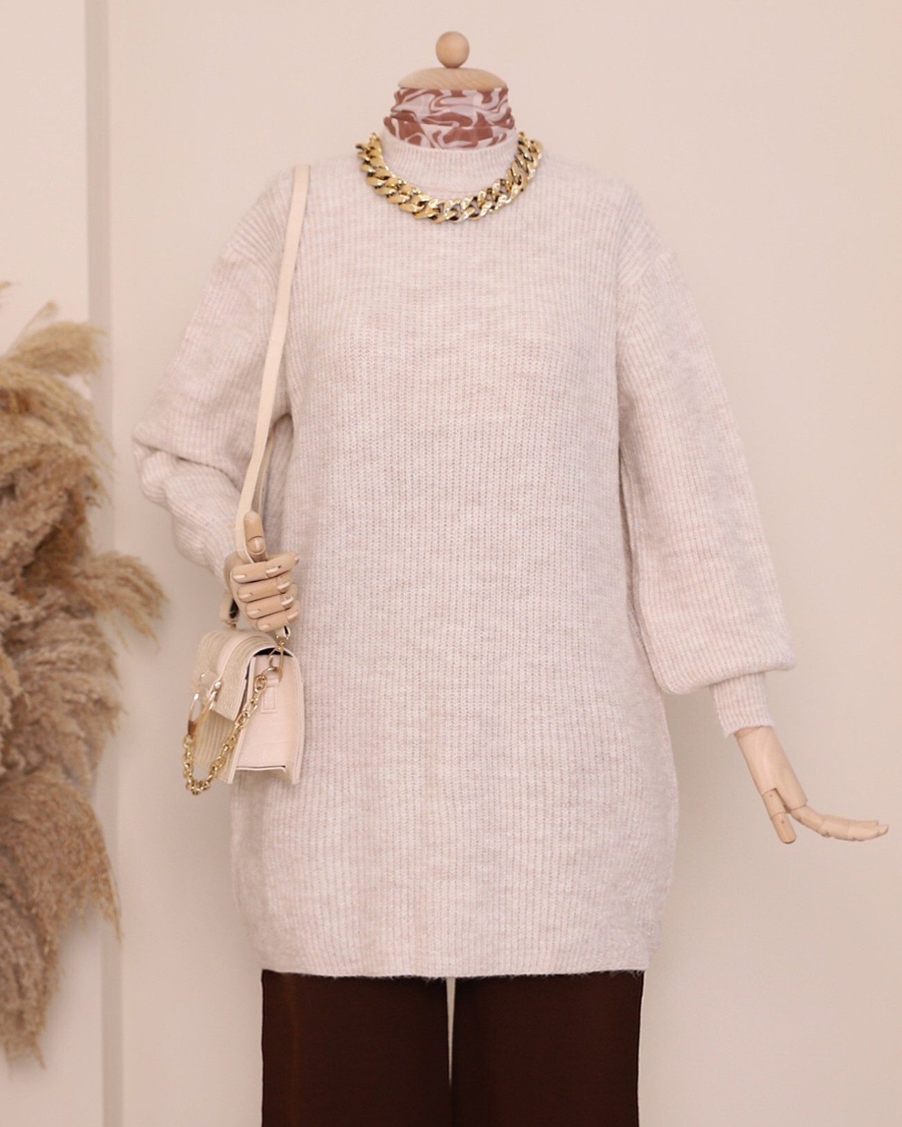 يُعد نموذج سترة التريكو الخاص بنا ، والذي يتميز بنصف رقبة وأكمام بالون وأساور مطاطية ، من بين أكثر السترات الصوفية تريكوًا عصرية.