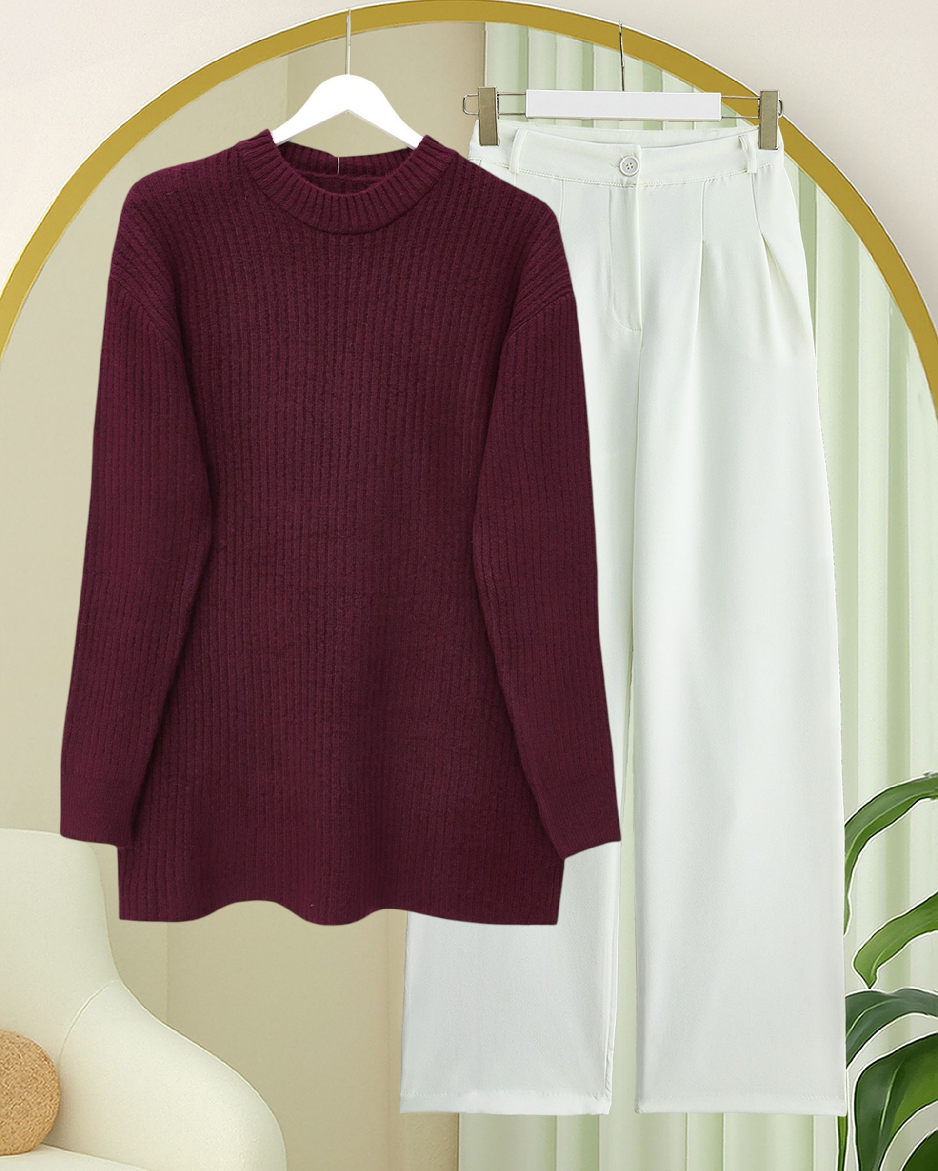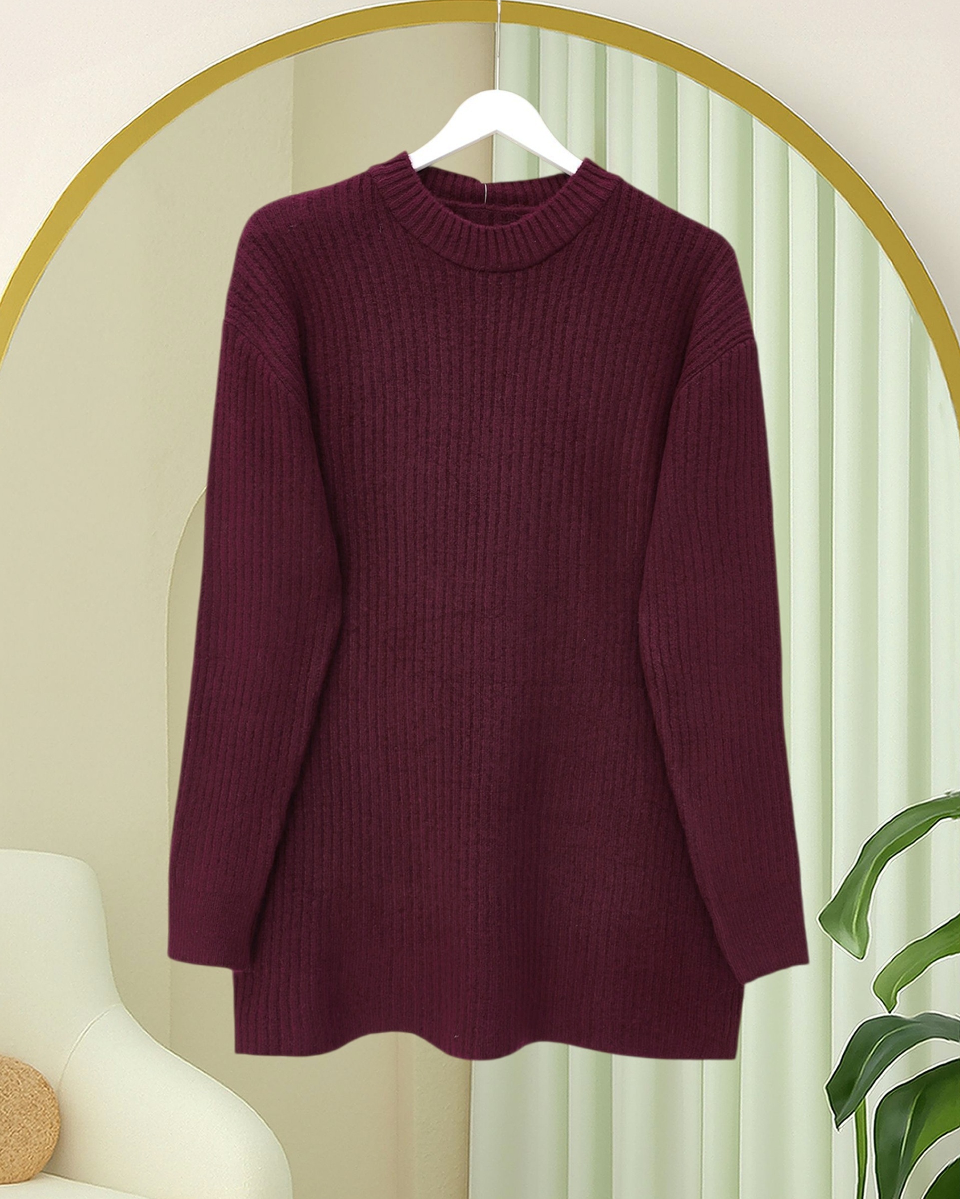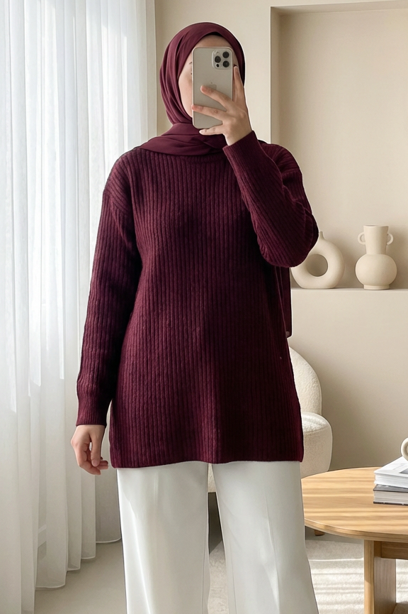 سترة محبوكة طويلة مضلعة -بوردو