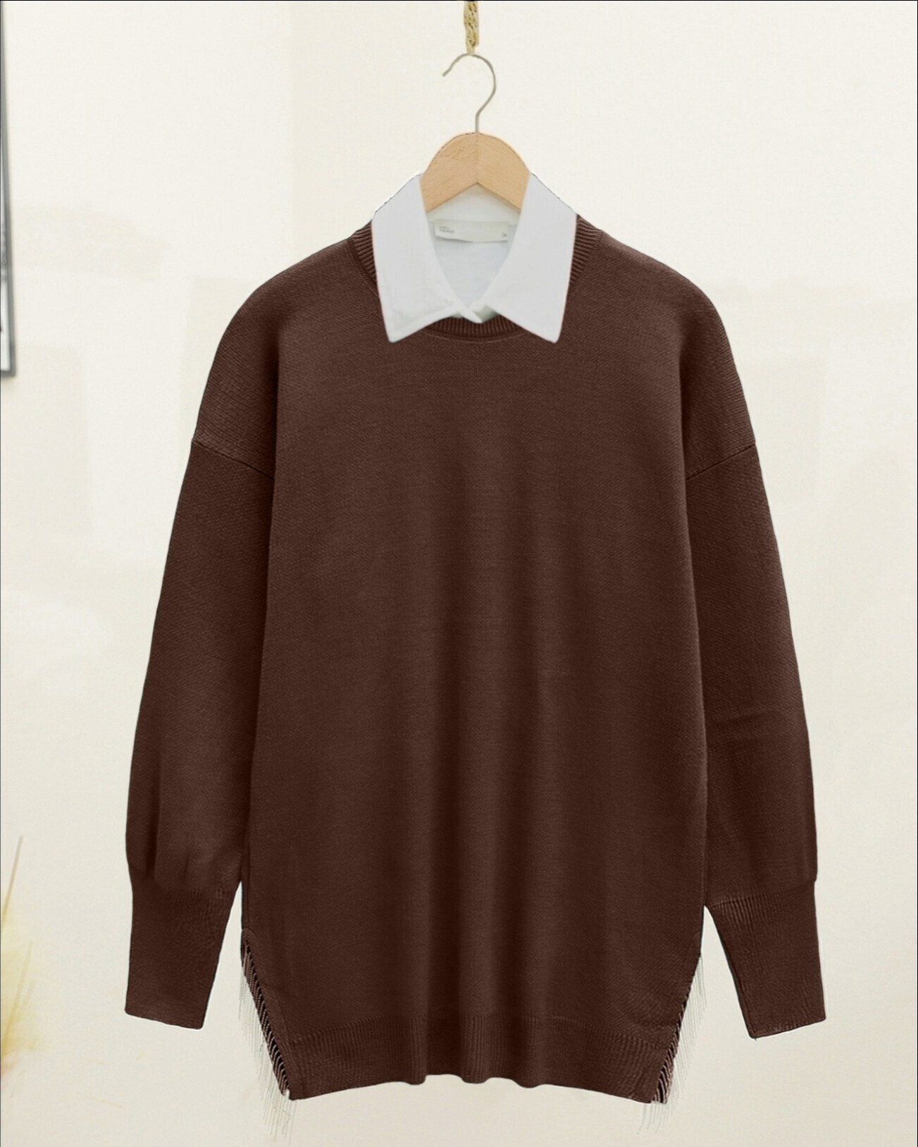 يعد موديل السترة المحبوكة ذات الرقبة الدائرية والمزودة بشرابة من بين الموديلات الأكثر شعبية للموسم الجديد.