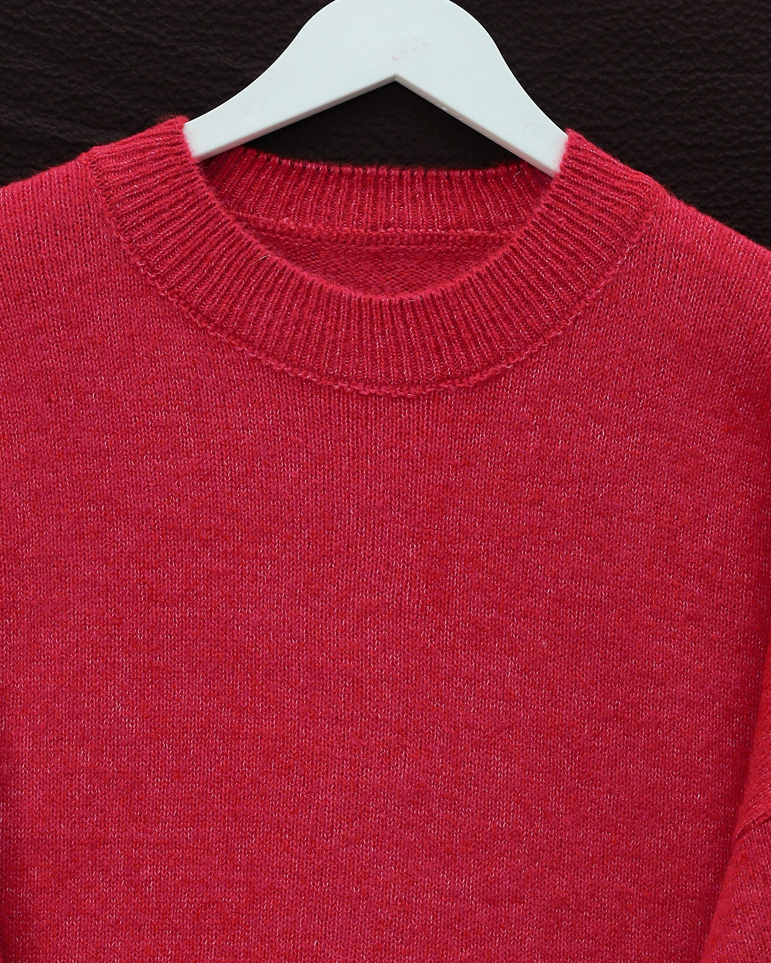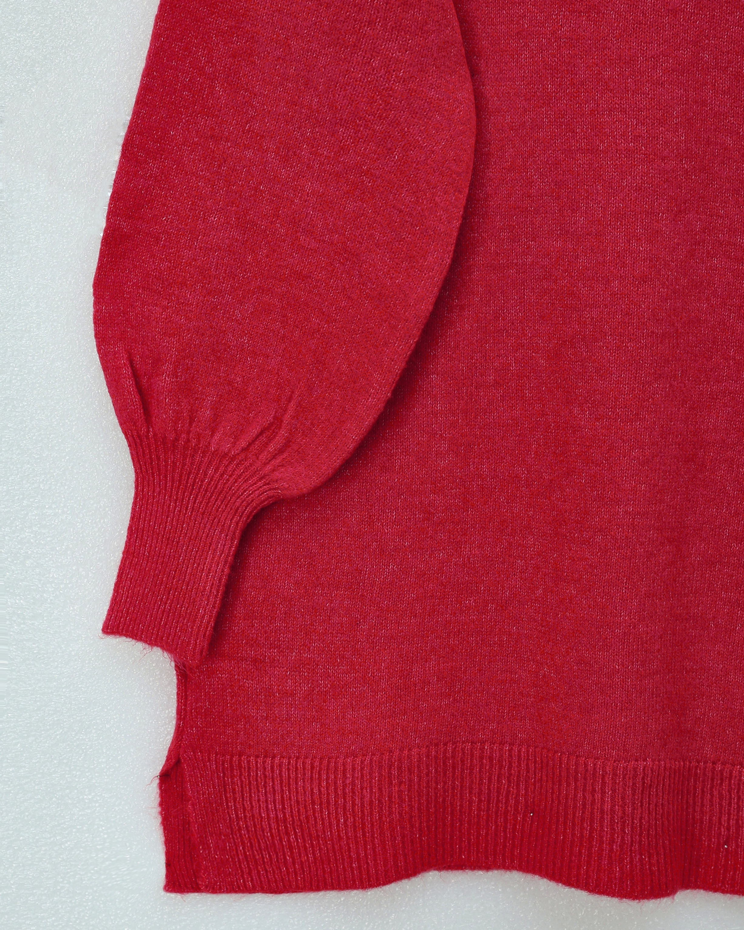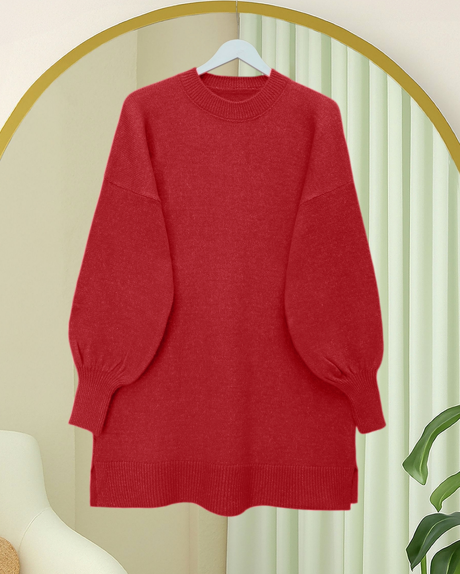 سترة تريكو فضفاضة بياقة دائرية وأكمام بالونية -لون العقيق