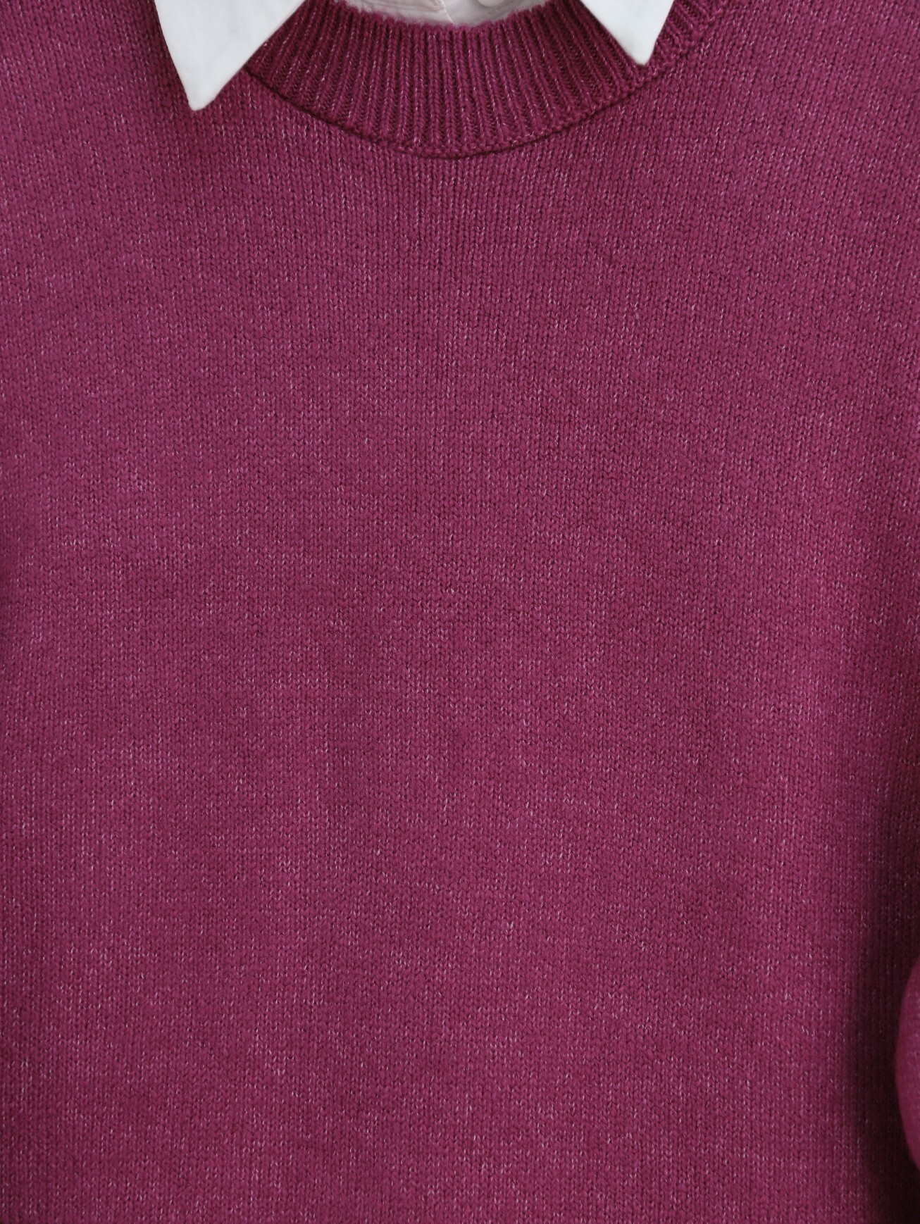 سترة تريكو فضفاضة بياقة دائرية وأكمام بالونية -لون الخوخ