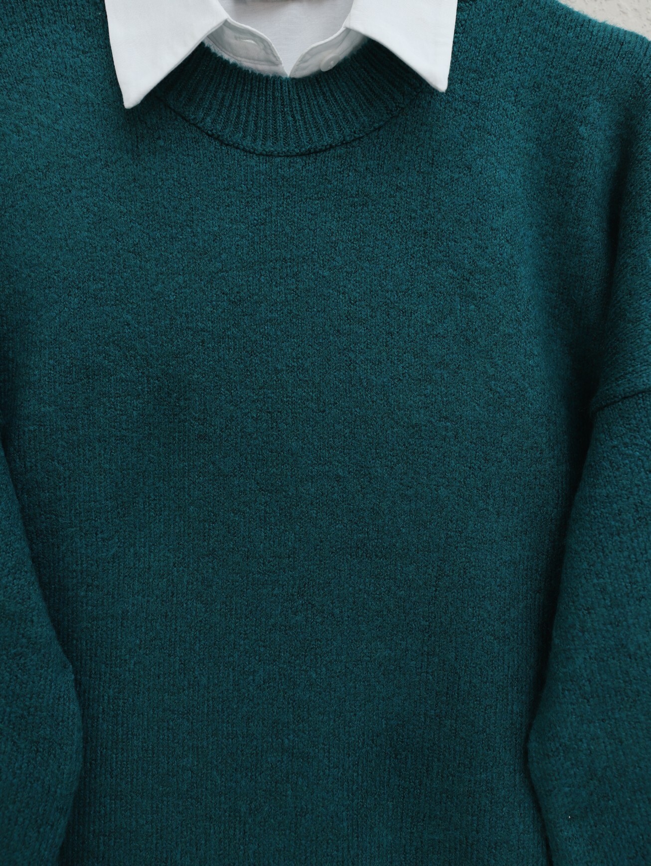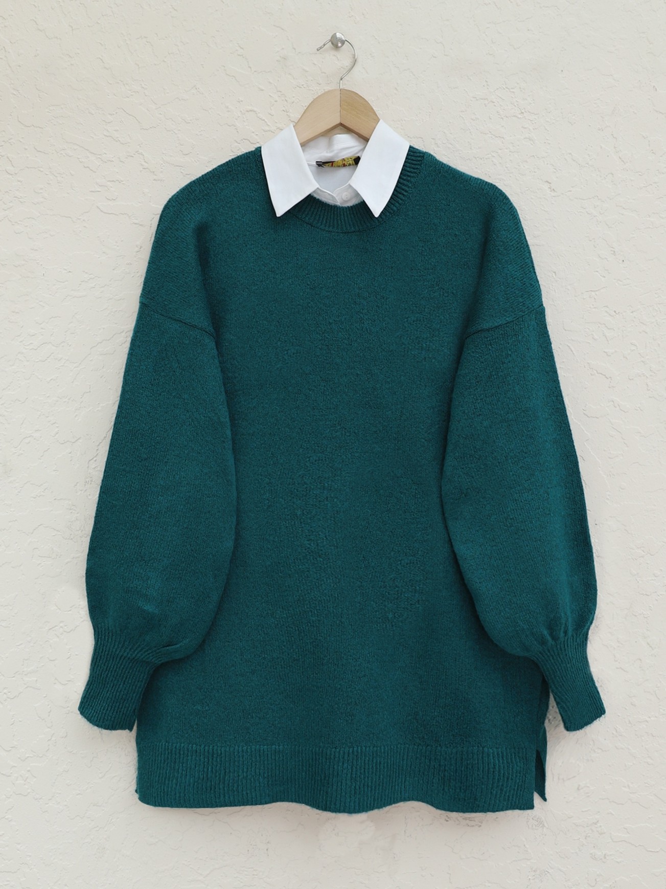 سترة تريكو فضفاضة بياقة دائرية وأكمام بالونية -زمرد