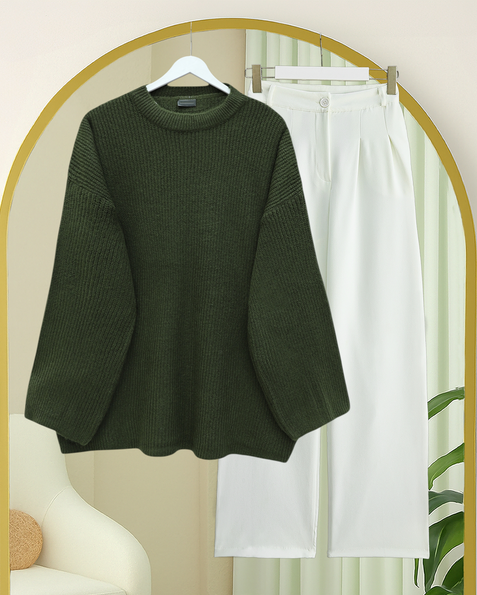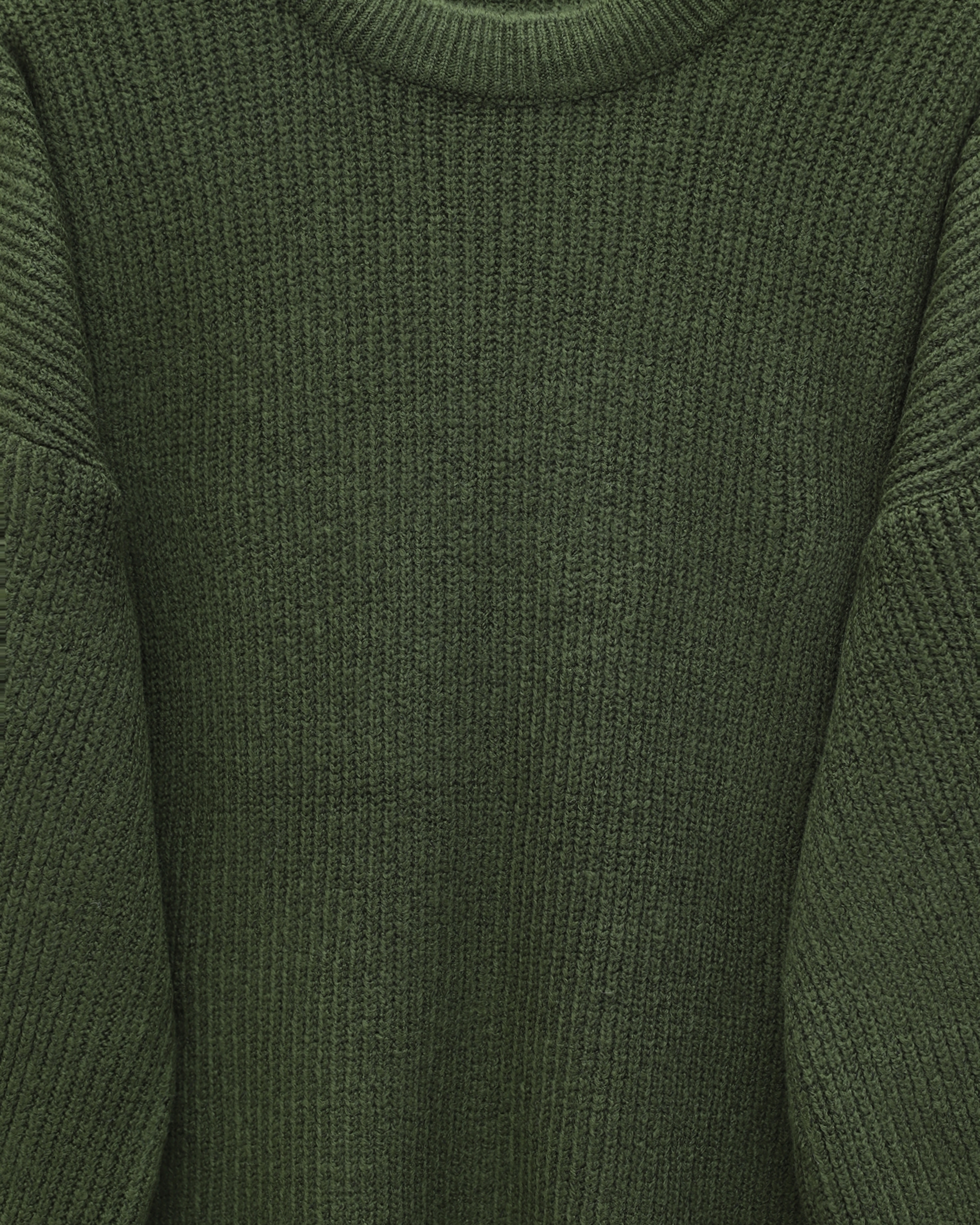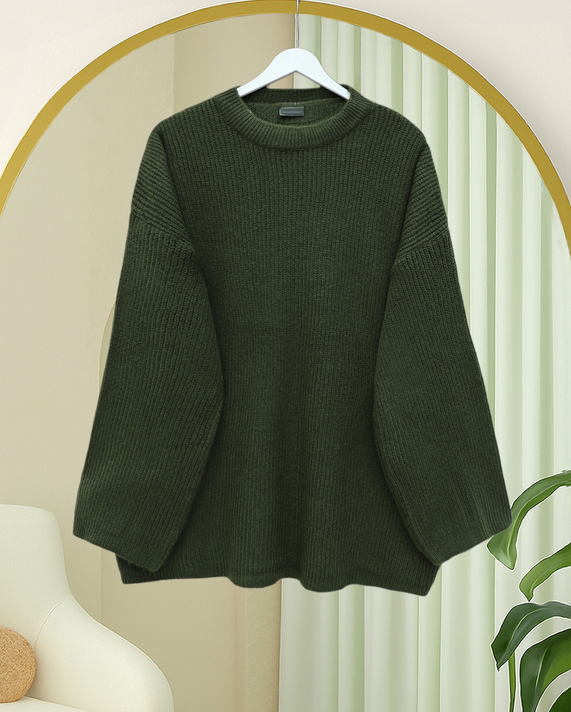 كنزة صوفية فضفاضة برقبة دائرية -خاكي