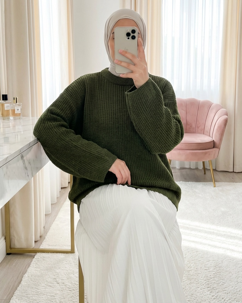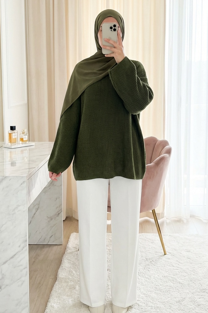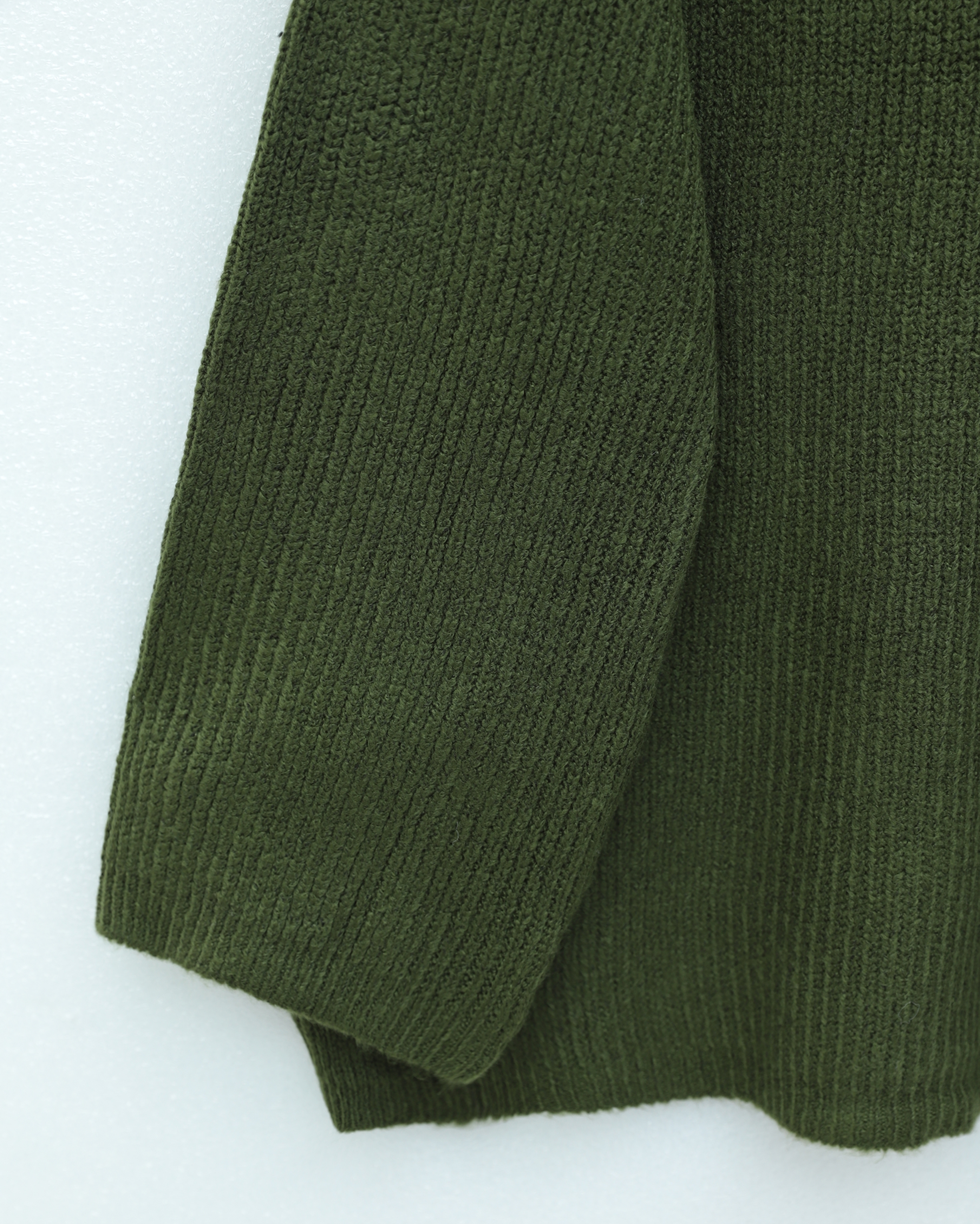 كنزة صوفية فضفاضة برقبة دائرية -خاكي