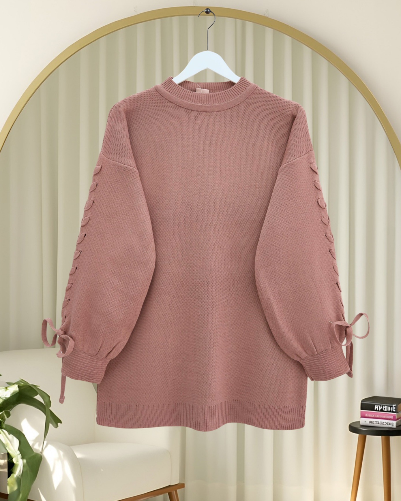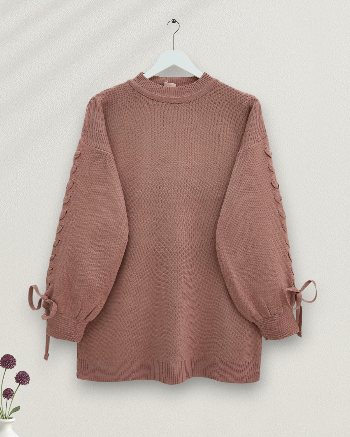 سترة محبوكة مفصلة برقبة مستديرة -وردة مجففة