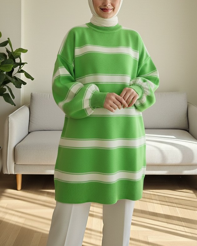 يعتبر موديل التونيك المخطط بنصف الرقبة والأكمام البالونية من بين الموديلات الأكثر شعبية للموسم الجديد.