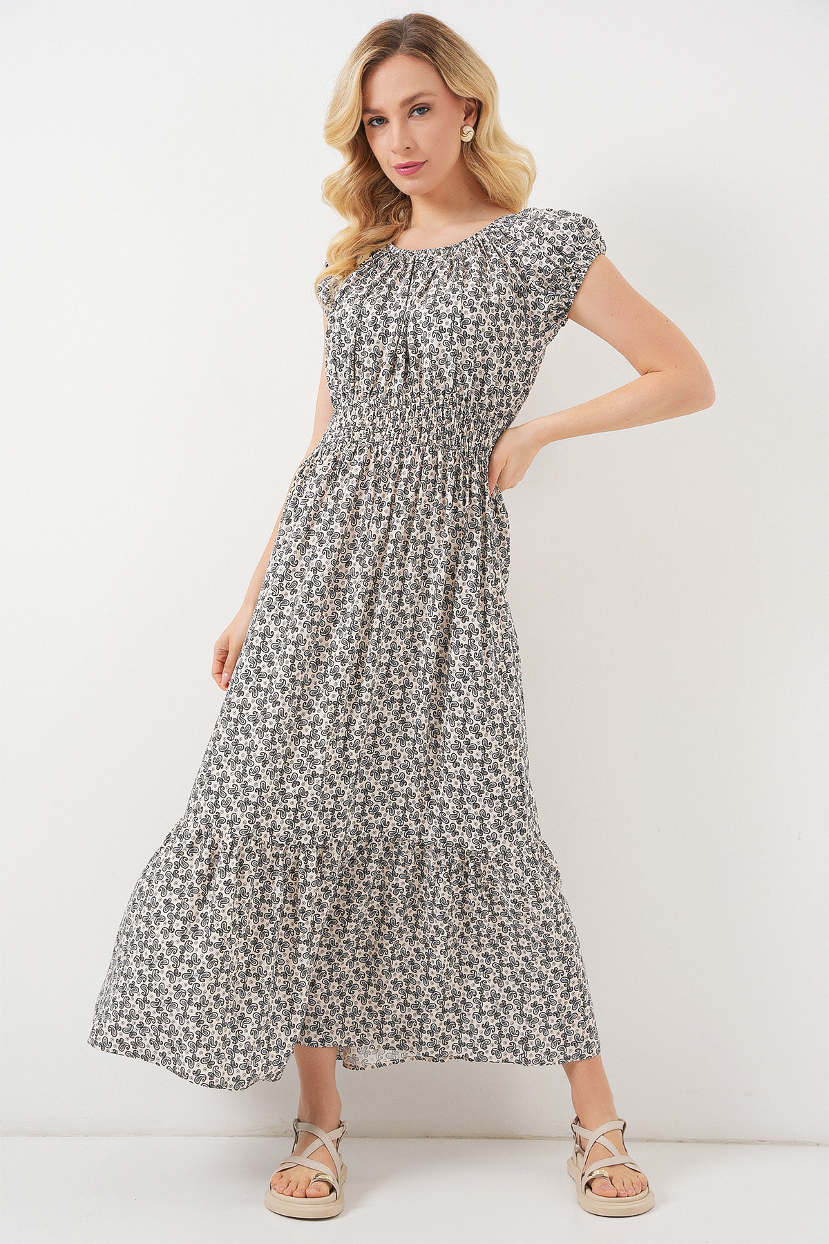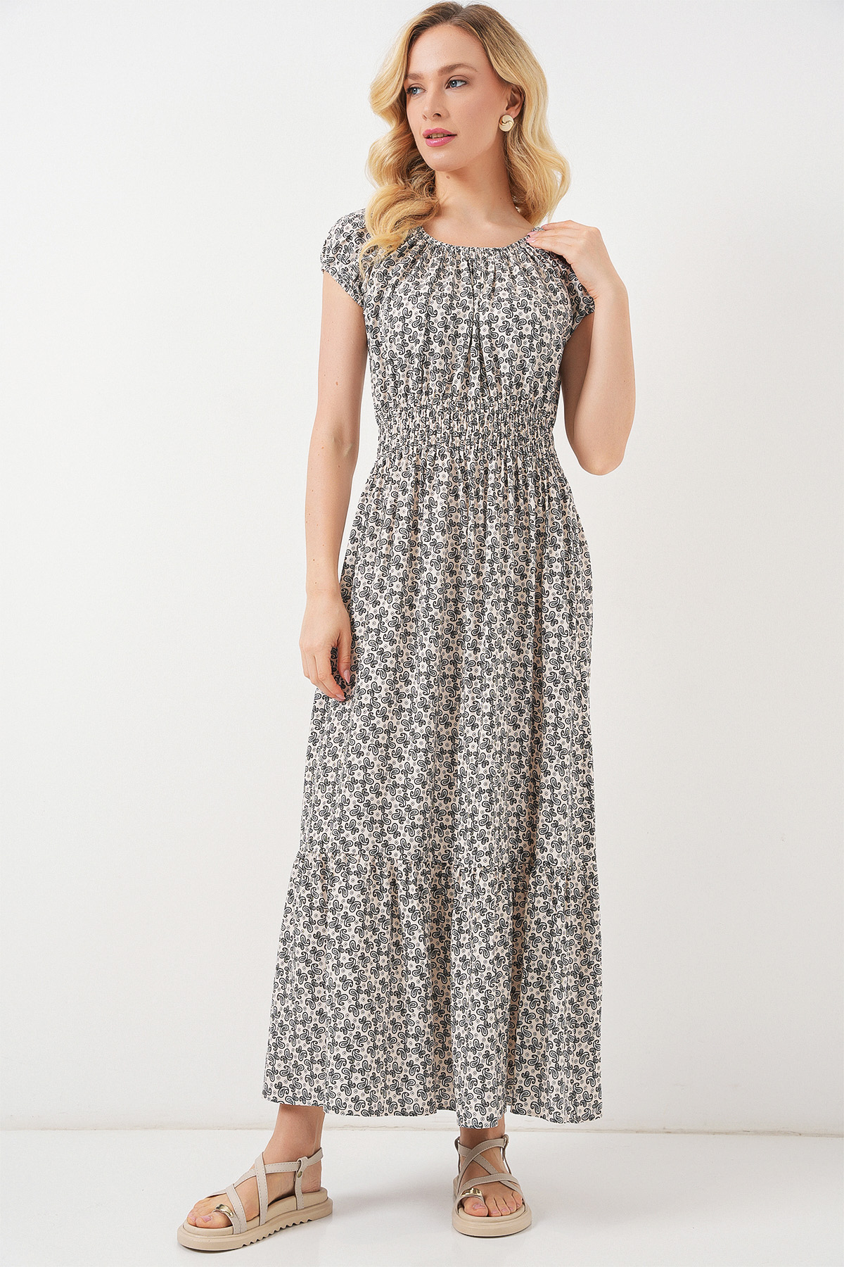 فستان نسائي بتفاصيل ياقة مكشكشة