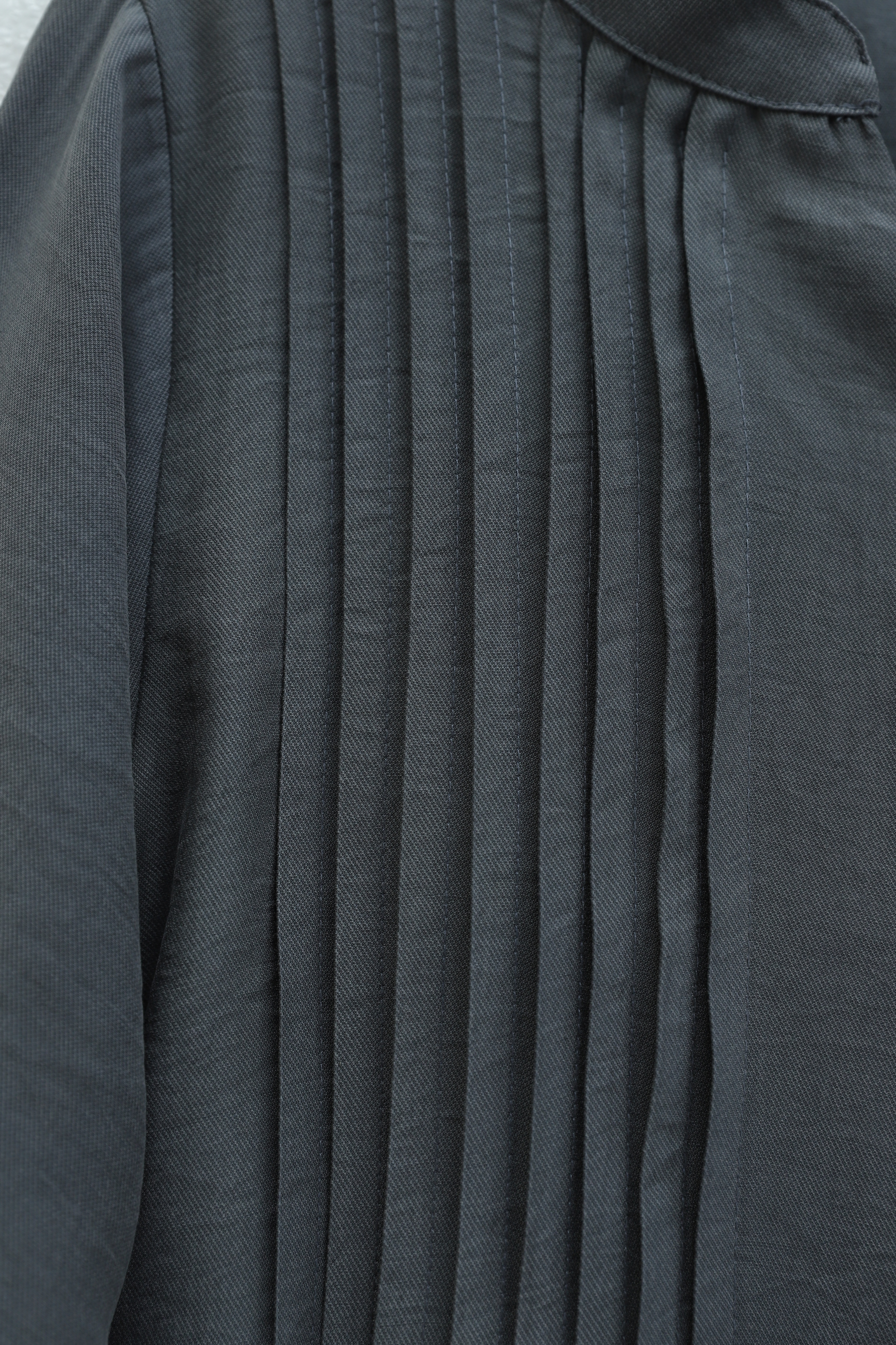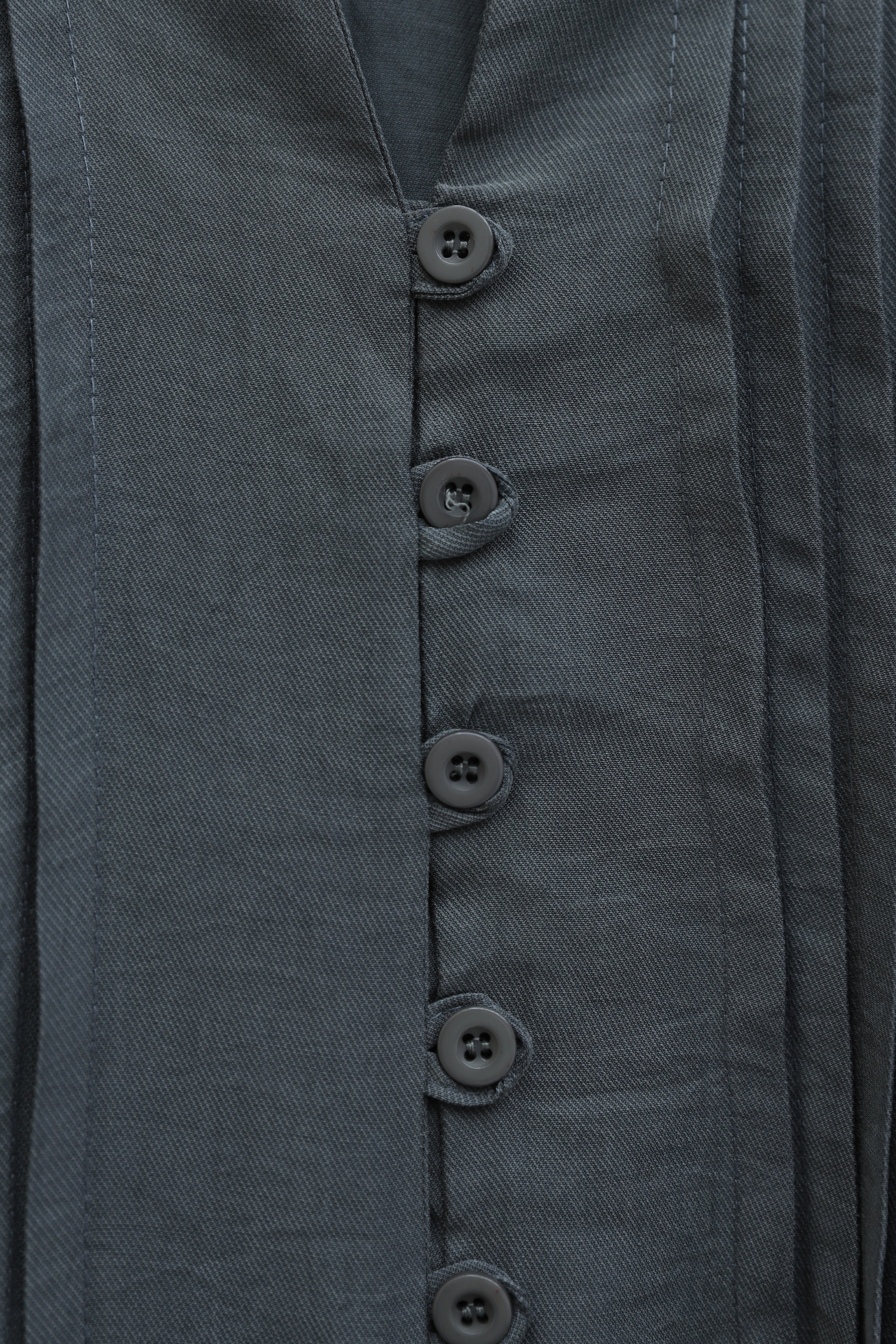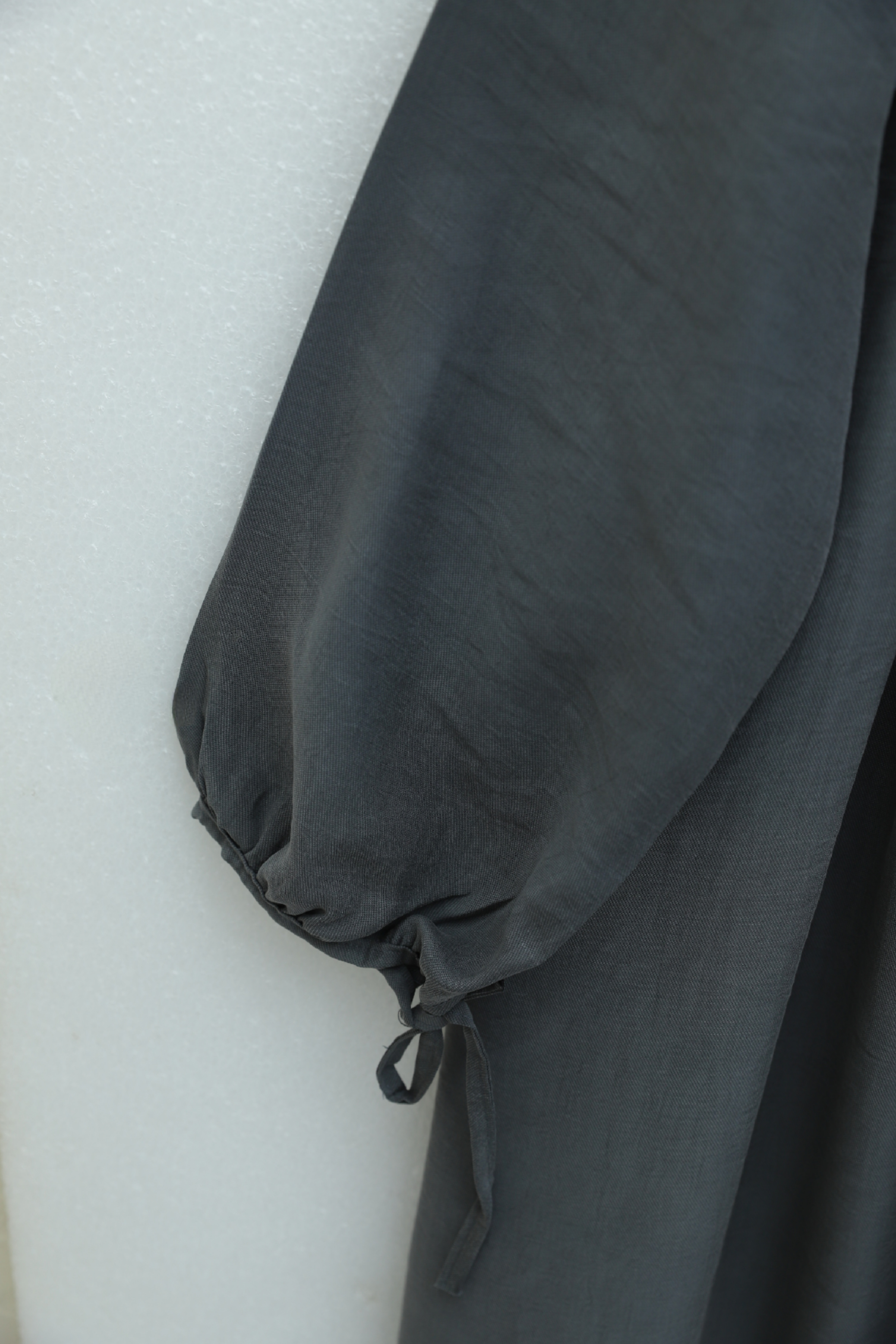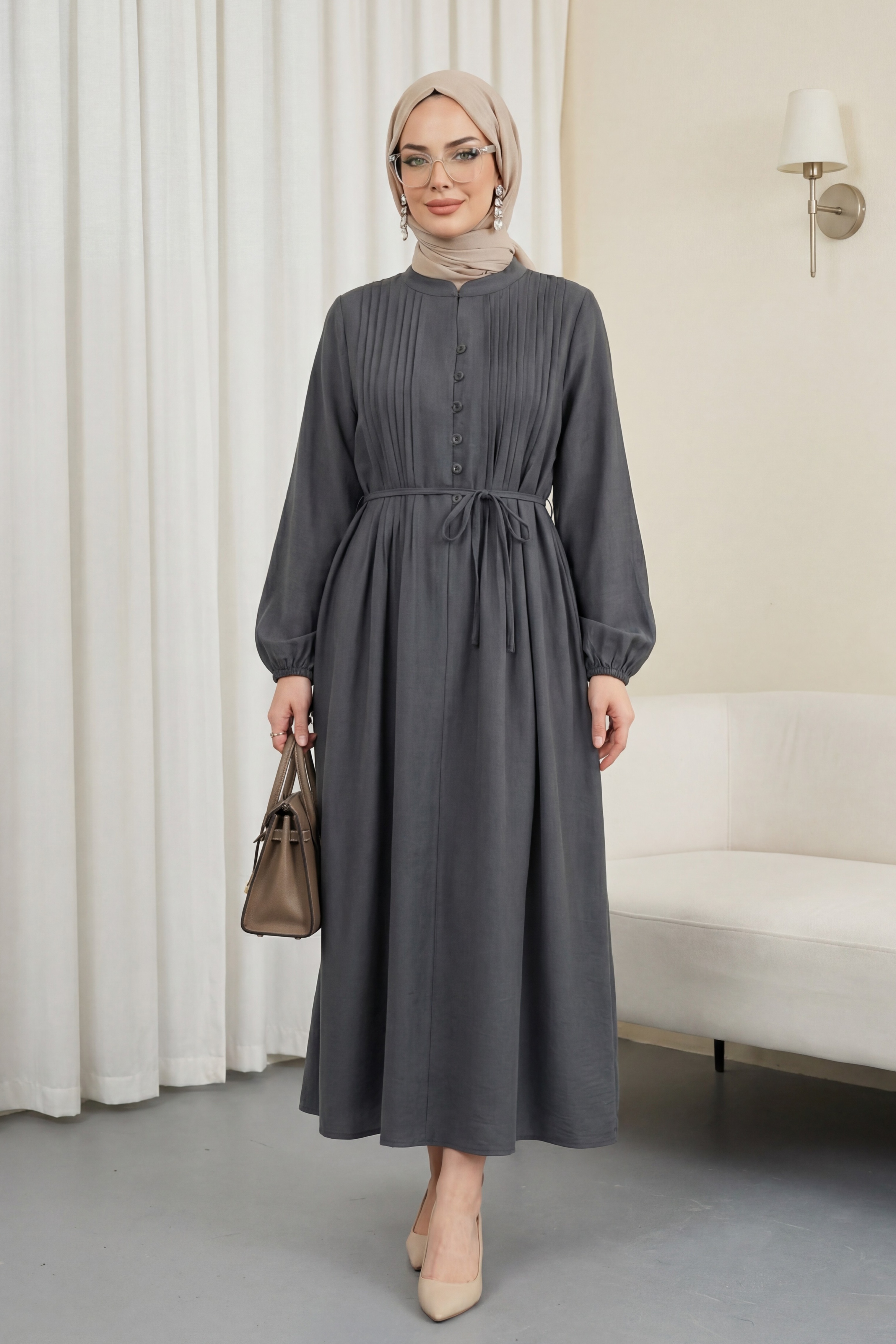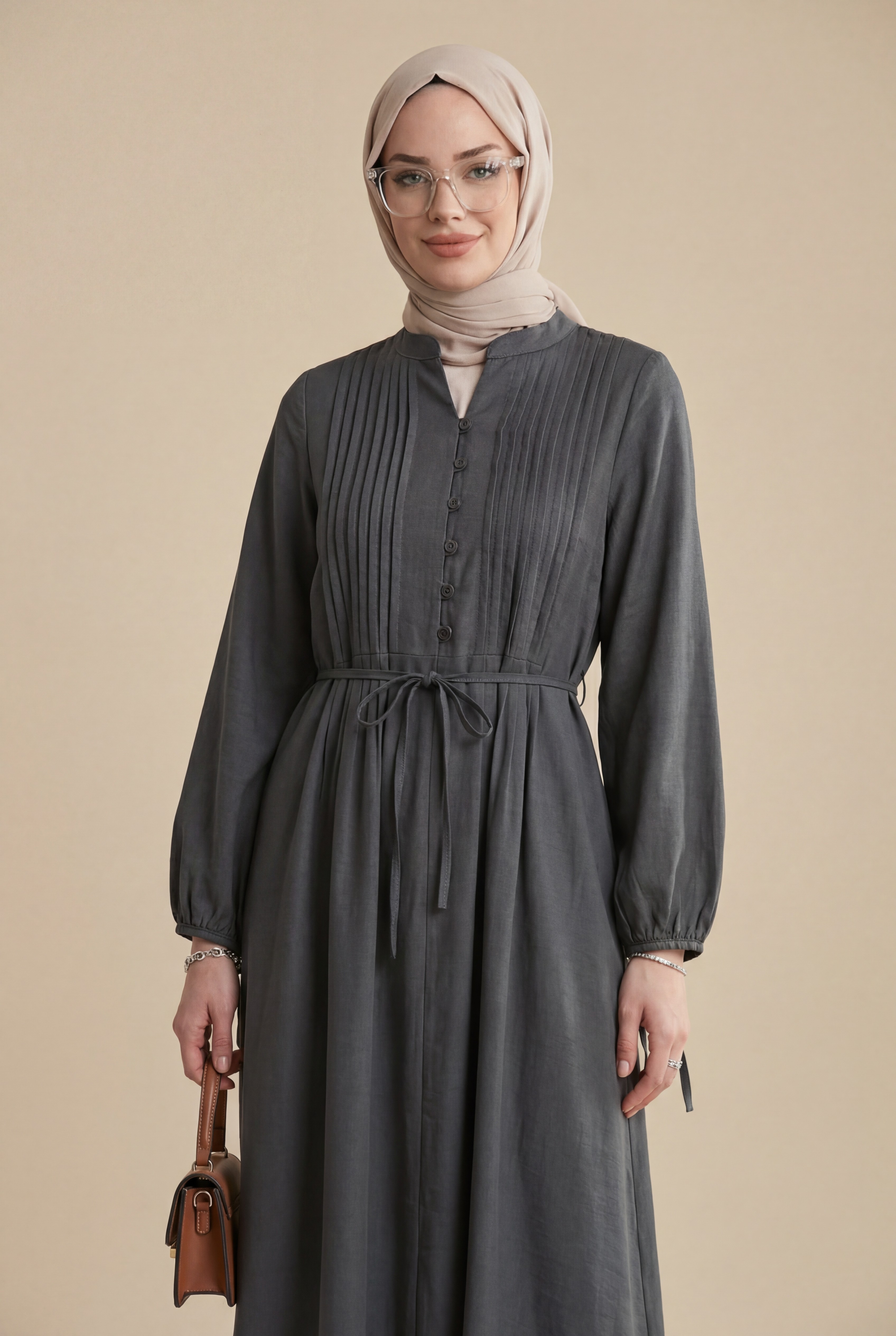 فستان تينسل مضلع بأزرار نصفية ورباط أمامي -لون مدخن