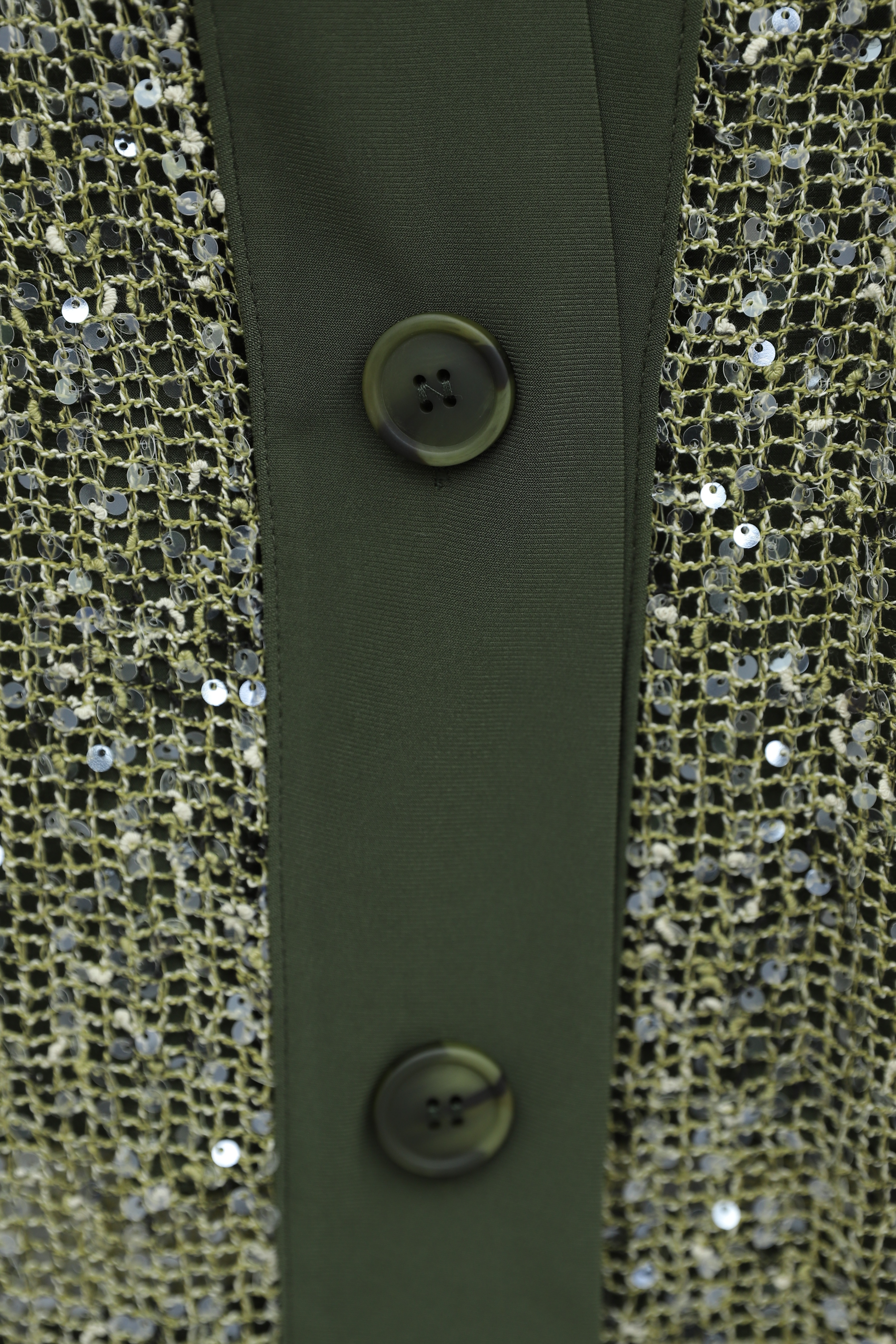 طقم سندي من 3 قطع مع كارديجان شبكي مزين بالترتر -خاكي