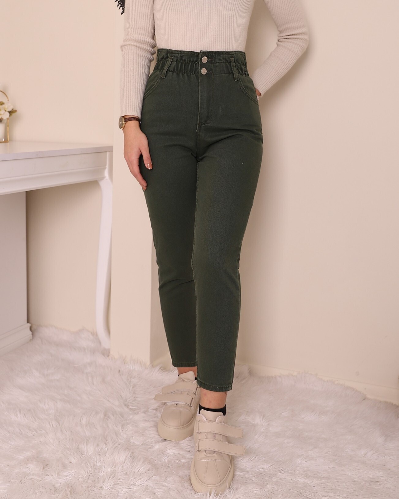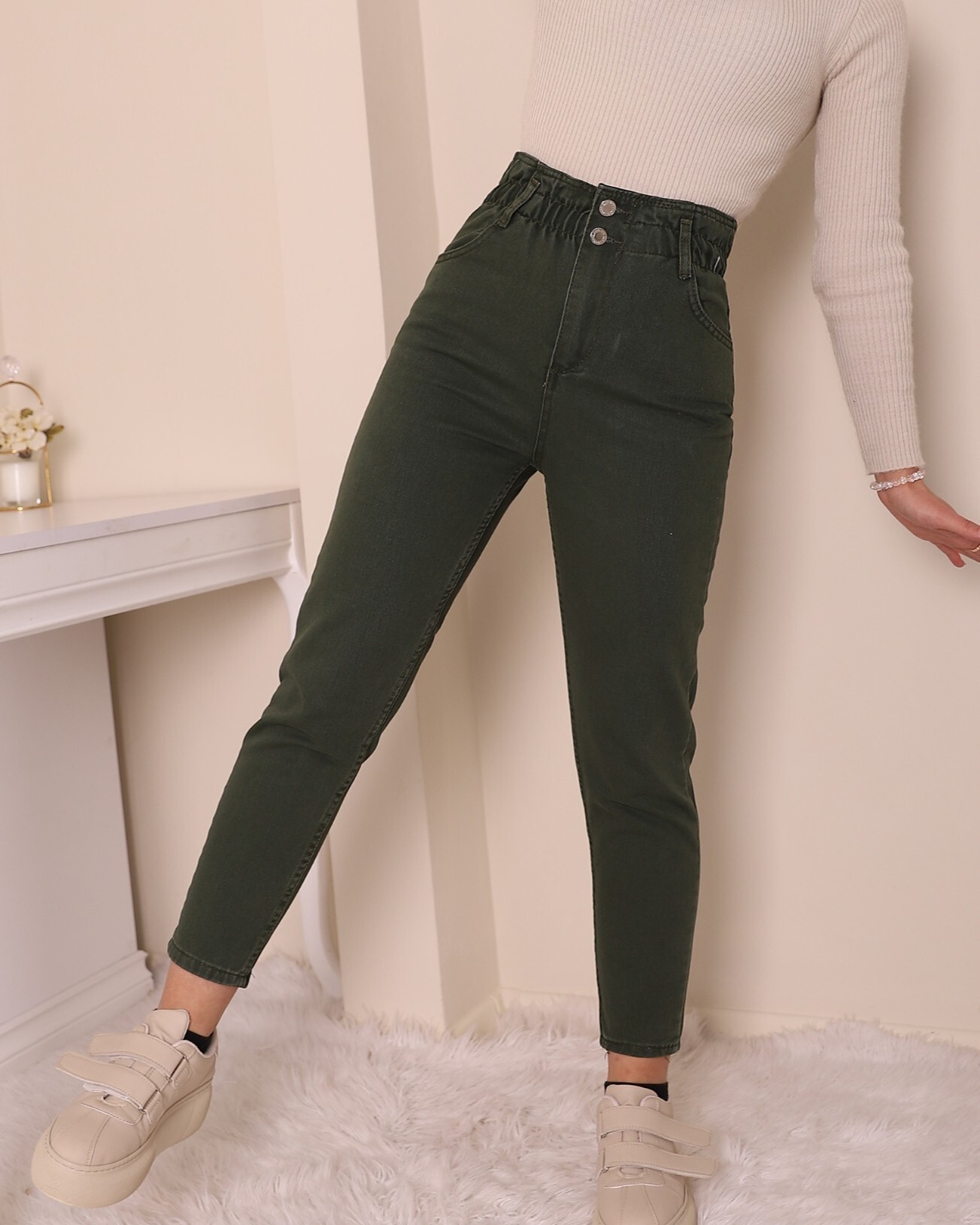 زرنا الأمامي ، بنطلون جينز بخصر مطاطي 4 جيوب هو المنتج الأكثر عصرية للموسم الجديد.