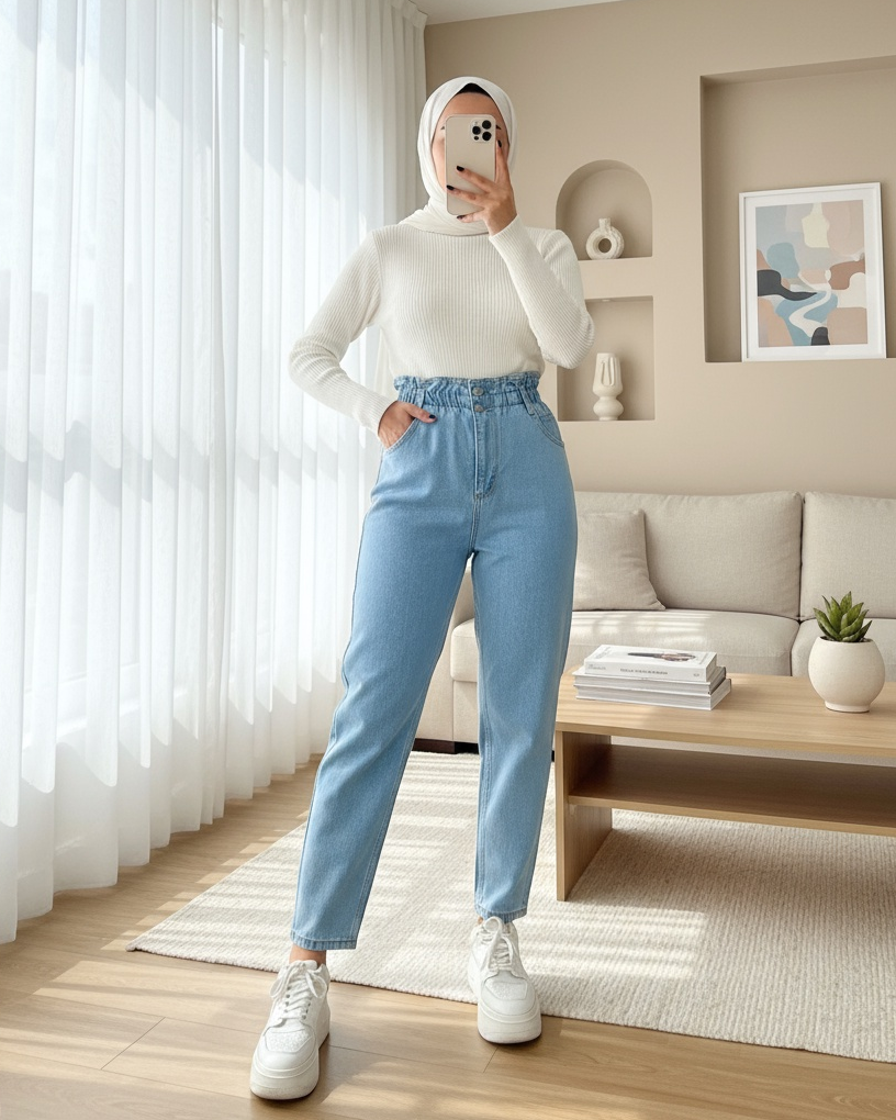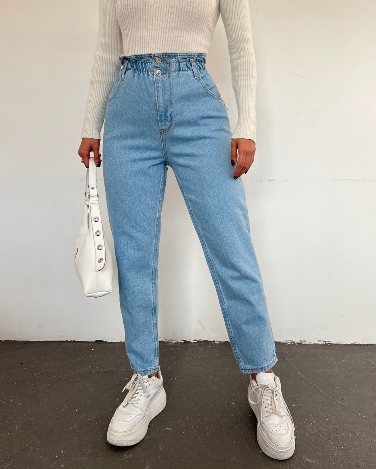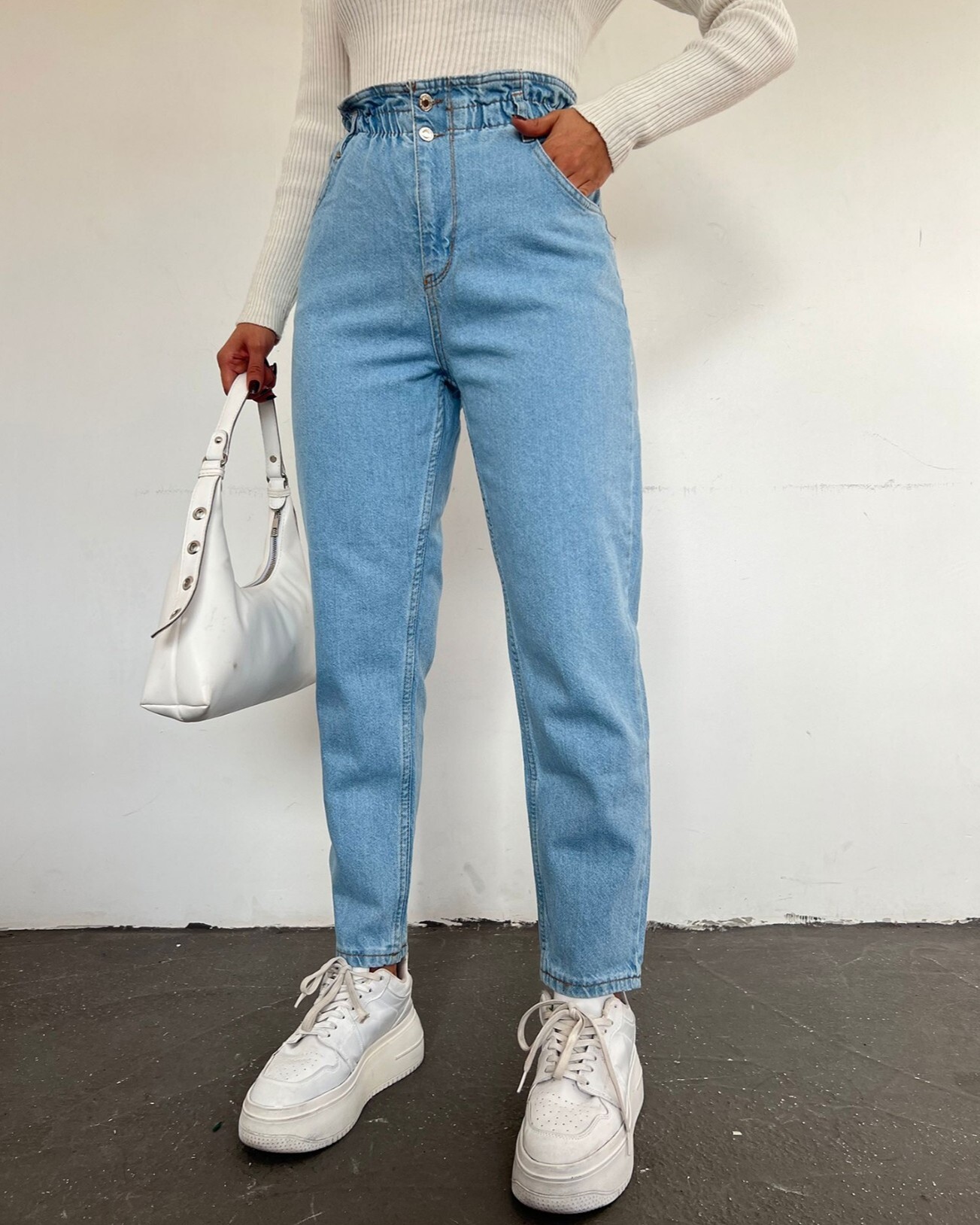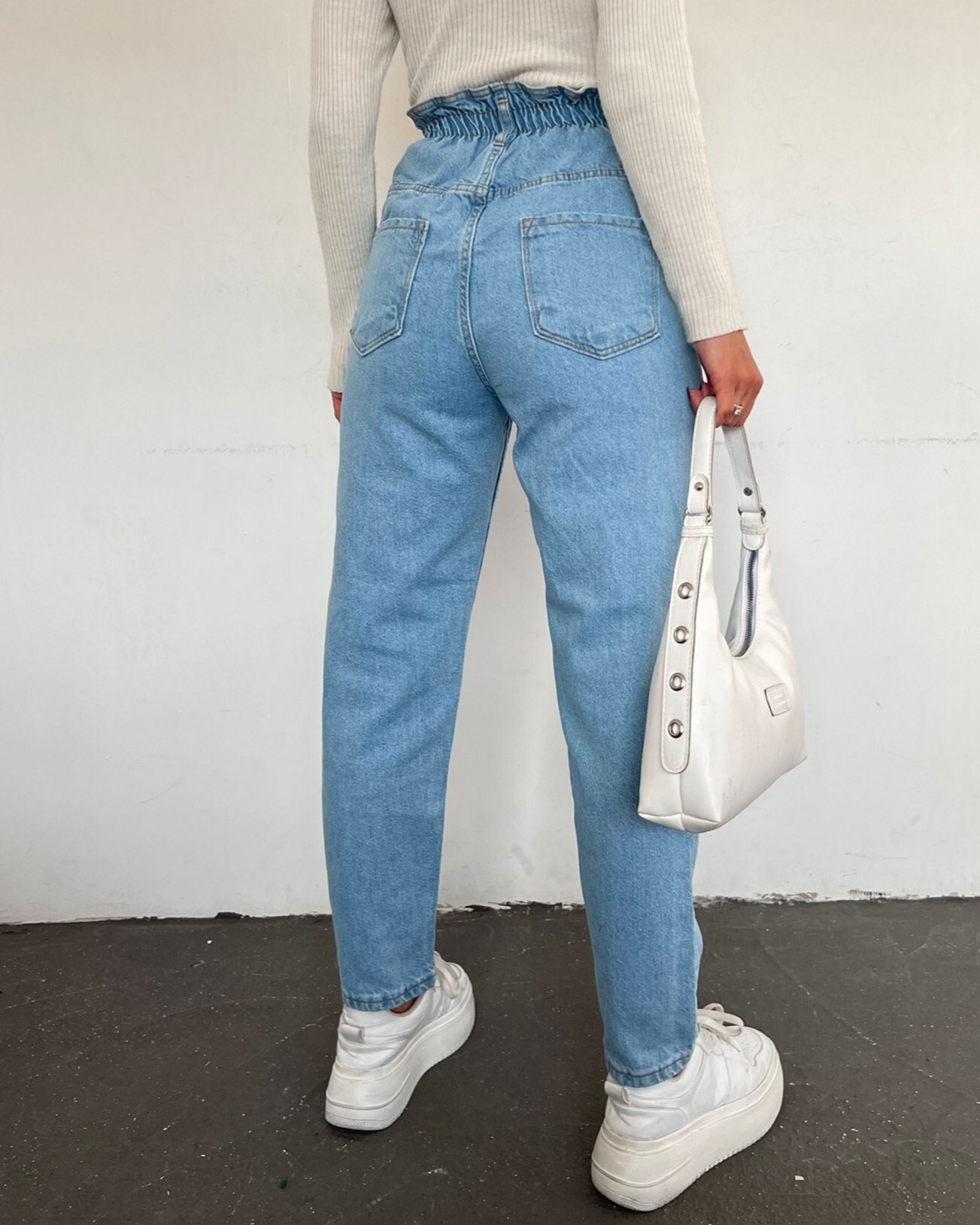 جينز بخصر مرتفع -أزرق فاتح