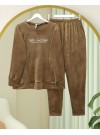 طقم بيجامة مخملية فرنسية مع نص منقوش -كحلي