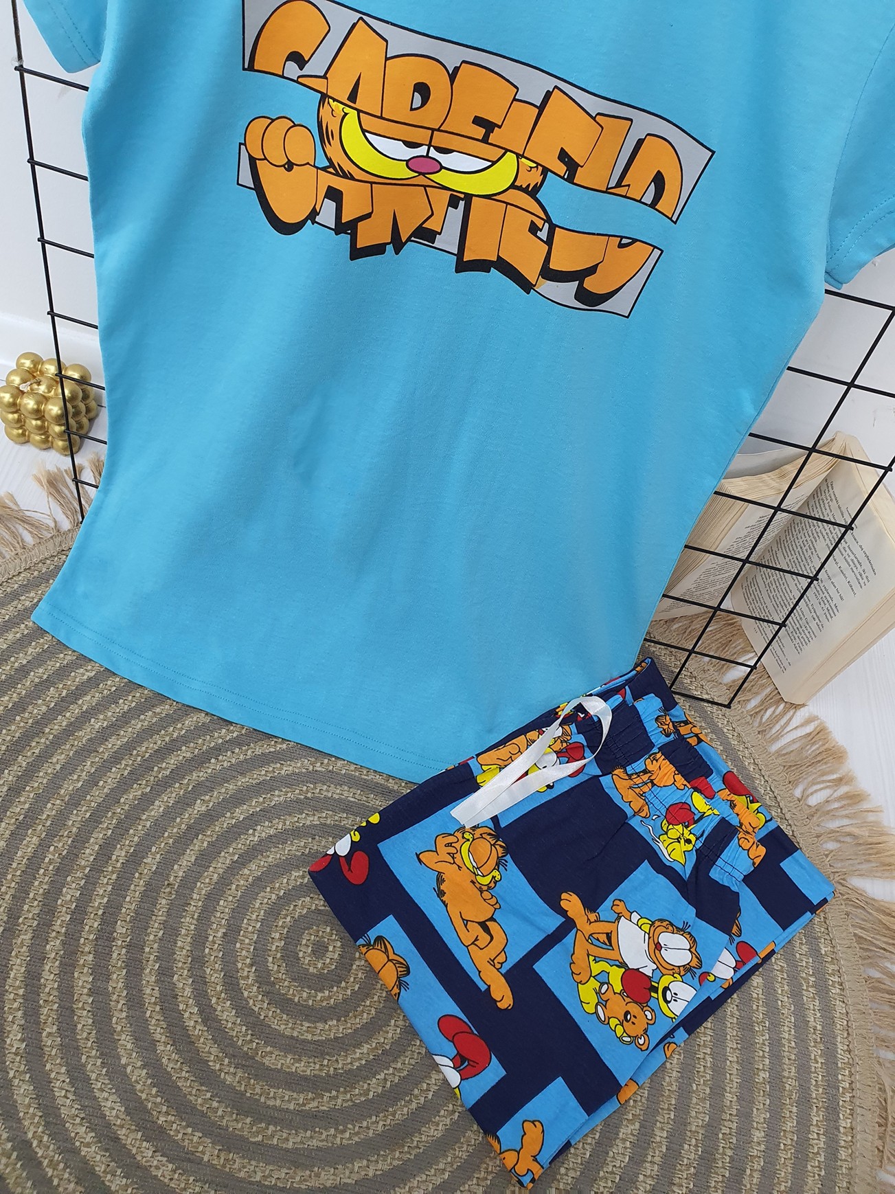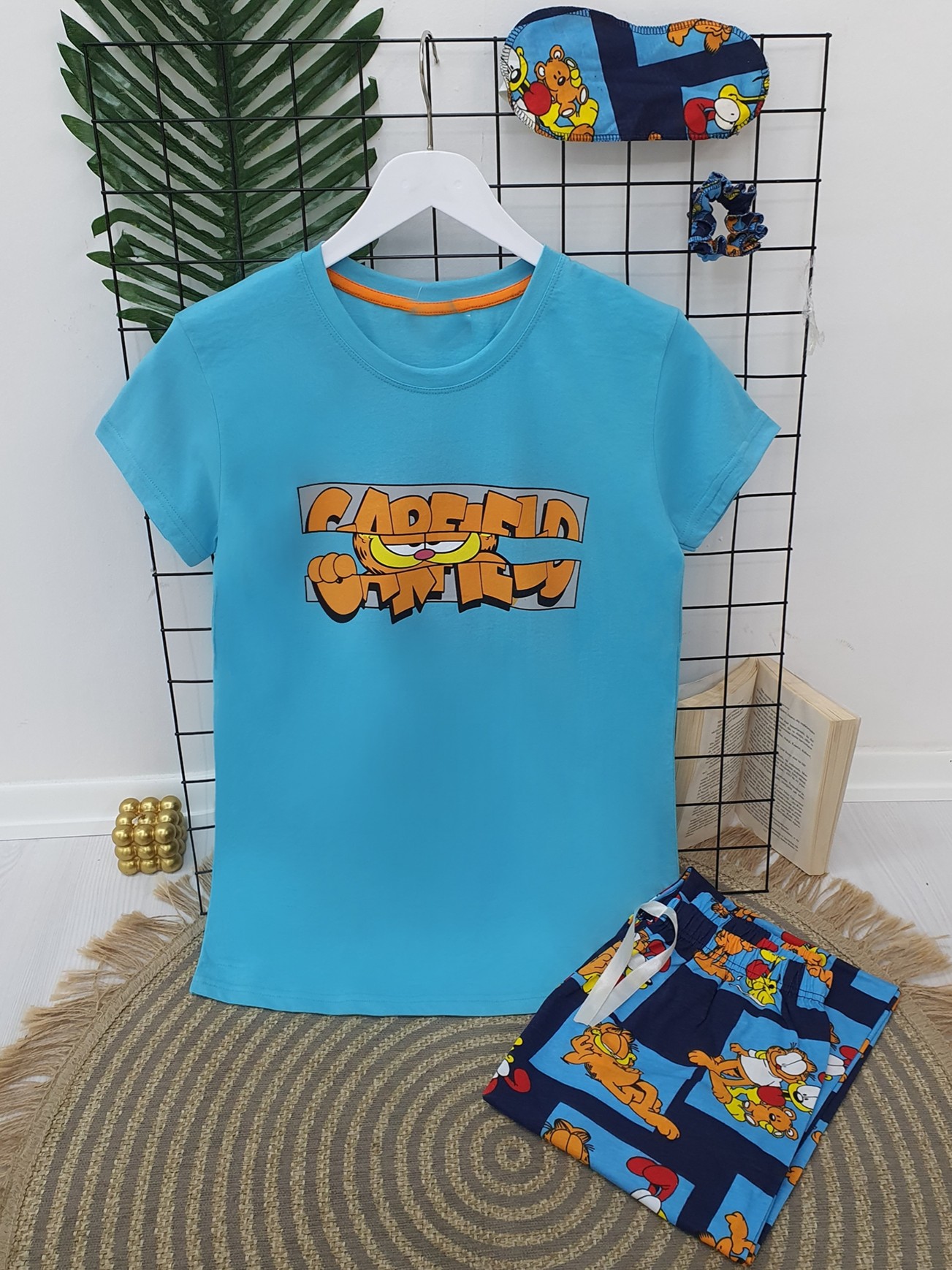 ياقة دائرية ، طبعة أمامية ، أكمام قصيرة ؛ يعد نموذج طقم البيجامة الخاص بنا ، بخصر وحافة مرنين ، بدون جيوب وإبزيم ورقعة للعين ، من بين النماذج الأكثر شعبية في الموسم الجديد.