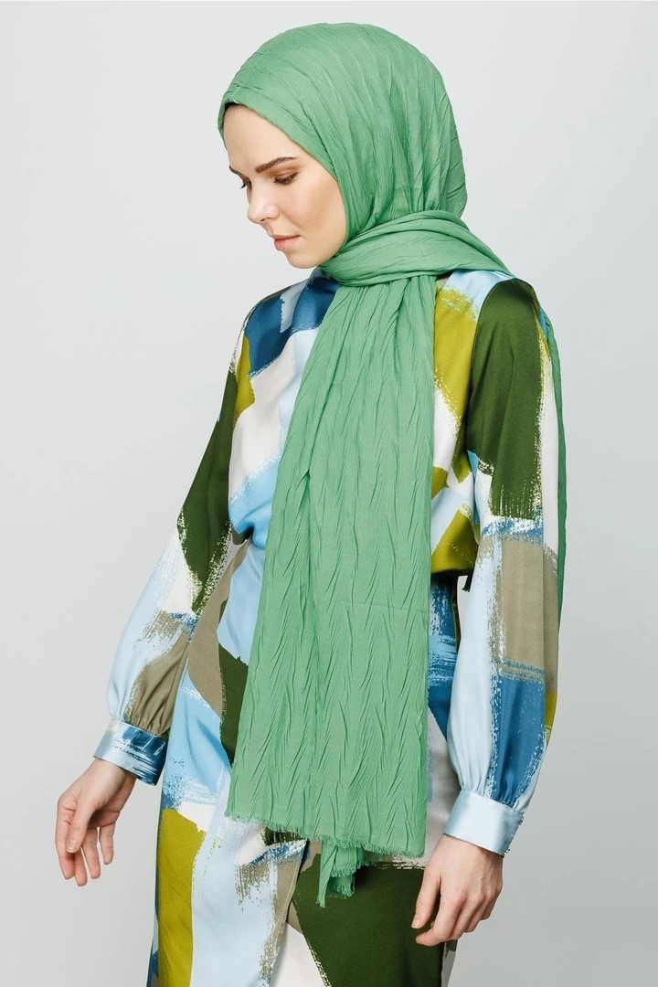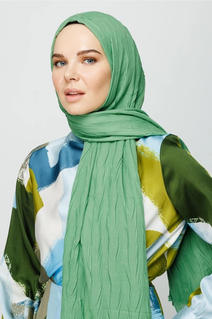 مصنوع من قماش الخيزران خفيف الوزن وجيد التهوية، يوفر هذا الشال المطوي راحة طوال اليوم، كما أن شكله الانسيابي وثنياته الأنيقة تجعله مناسبًا للعديد من الأنماط، من الارتداء اليومي إلى المناسبات الخاصة.
