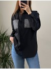 قميص كتان حجري ومطرز -أسود