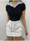 قميص بوبلين بجيب حجري -أبيض