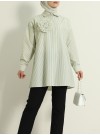 قميص بروش مخطط بزر اللؤلؤ -وردي