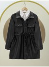 قميص جلدي بجيب مزدوج على الخصر -أسود
