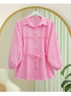 قميص حجري بأزرار وخصر مربوط وتفاصيل دانتيل -أصفر