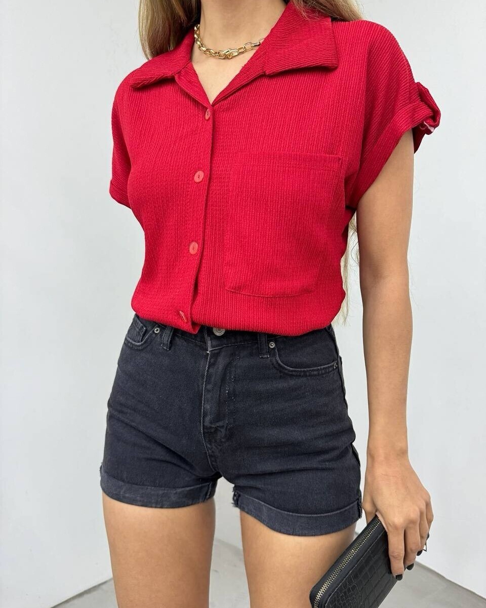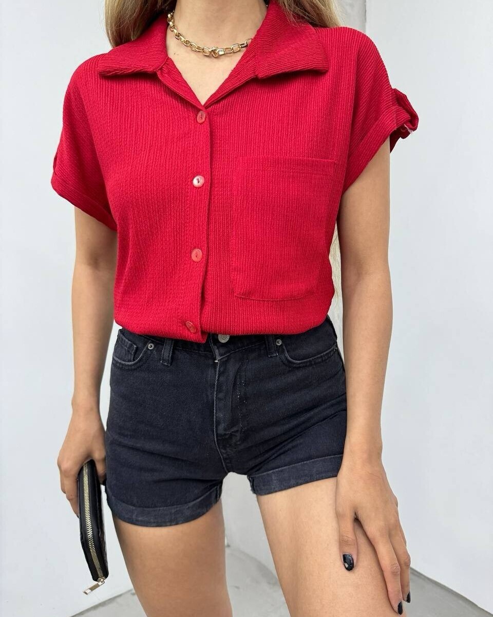 قميص بأكمام مزدوجة وجيب واحد من القماش المكرمش يقدم تصميمًا عصريًا وأنيقًا. مع تفاصيل الأكمام المزدوجة وتصميم الجيب الواحد العملي، يوفر هذا القميص الأناقة والوظيفية معًا. قماش المكرمش يجعلها اختيارًا مثاليًا لأولئك الذين يبحثون عن الراحة والأناقة. مثالي للاستخدام اليومي والمناسبات الخاصة، سيصبح هذا القميص جزءًا أساسيًا في خزانتك.