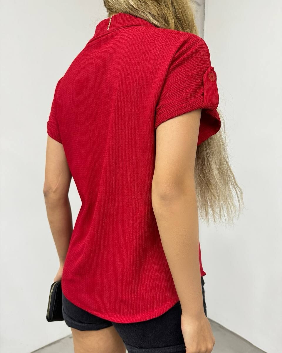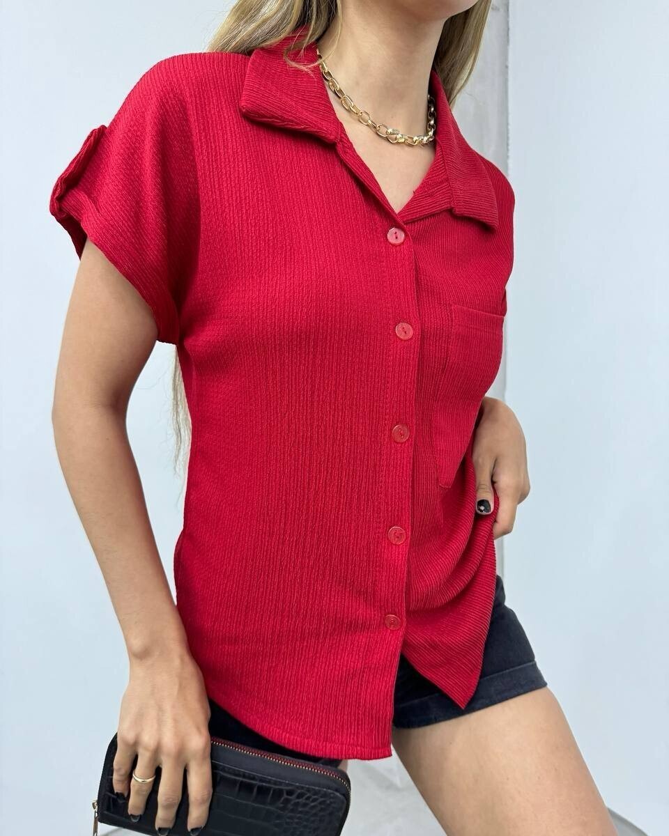 قميص متجعد بأكمام مزدوجة وجيب واحد -بوردو