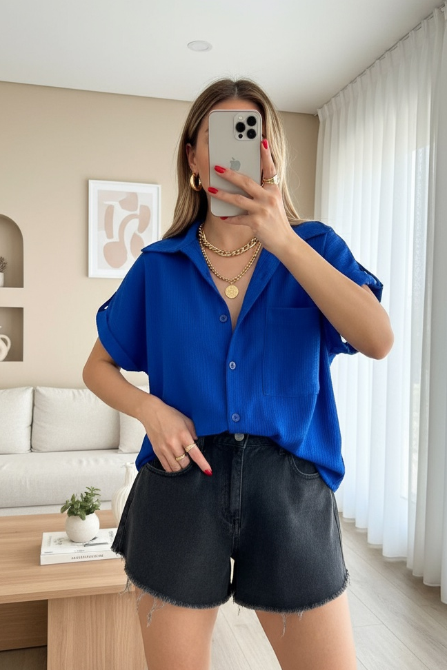 قميص بأكمام مزدوجة وجيب واحد من القماش المكرمش يقدم تصميمًا عصريًا وأنيقًا. مع تفاصيل الأكمام المزدوجة وتصميم الجيب الواحد العملي، يوفر هذا القميص الأناقة والوظيفية معًا. قماش المكرمش يجعلها اختيارًا مثاليًا لأولئك الذين يبحثون عن الراحة والأناقة. مثالي للاستخدام اليومي والمناسبات الخاصة، سيصبح هذا القميص جزءًا أساسيًا في خزانتك.