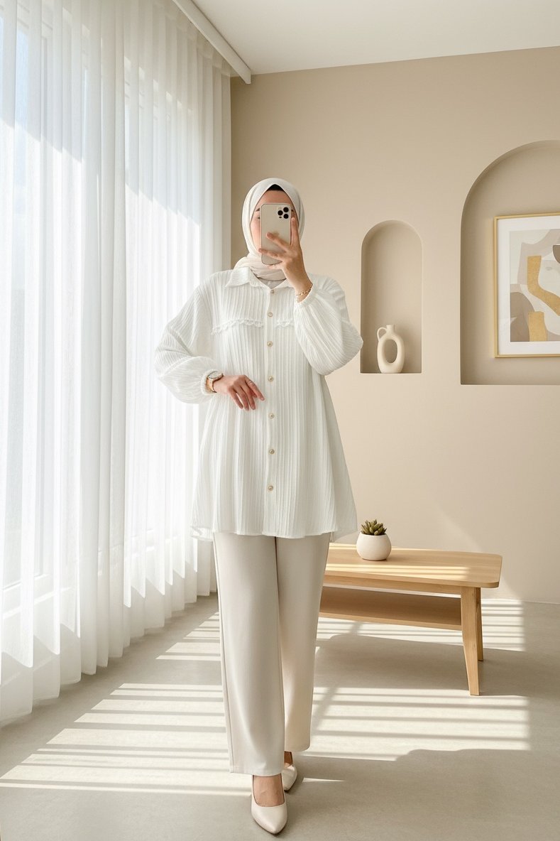 طقم كيمونو مع بنطال برباط أمامي مزدوج -اللون البيج