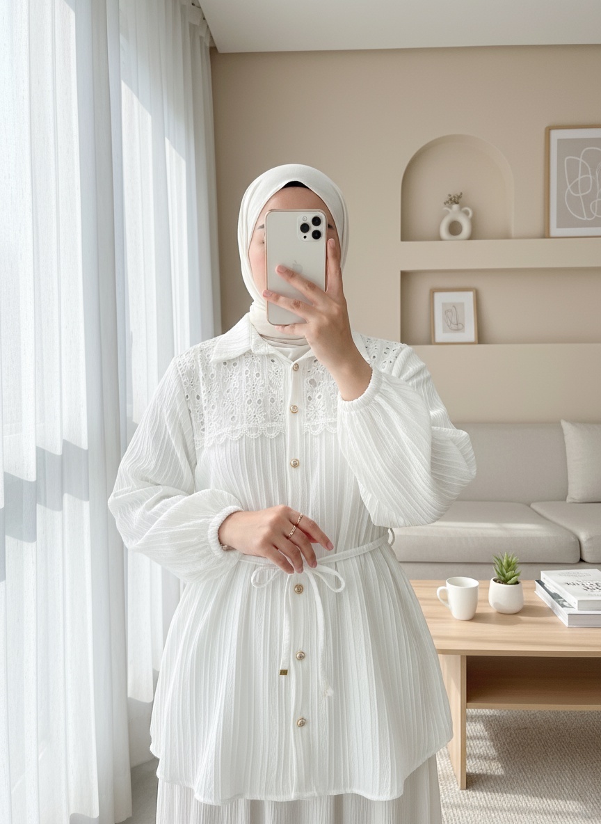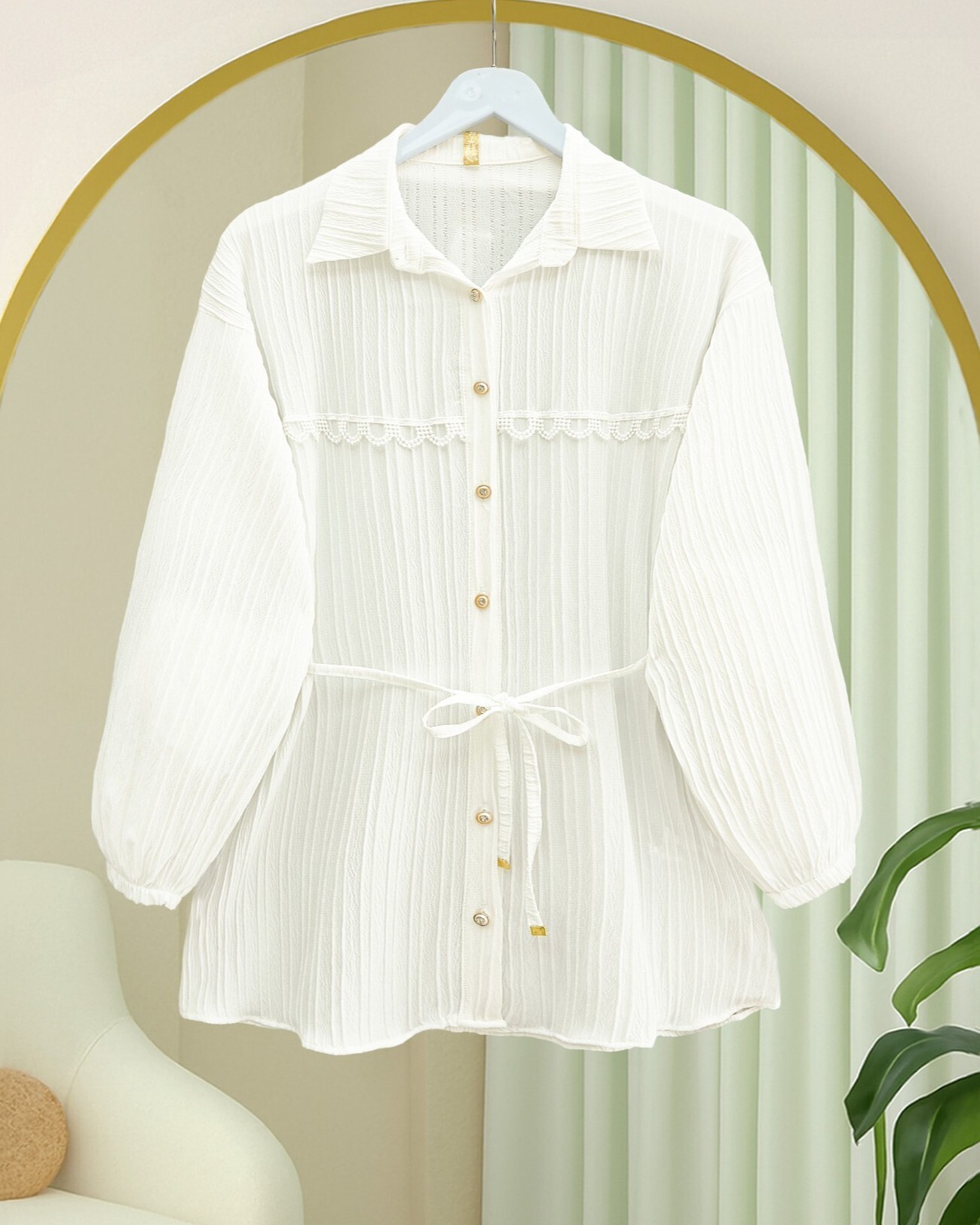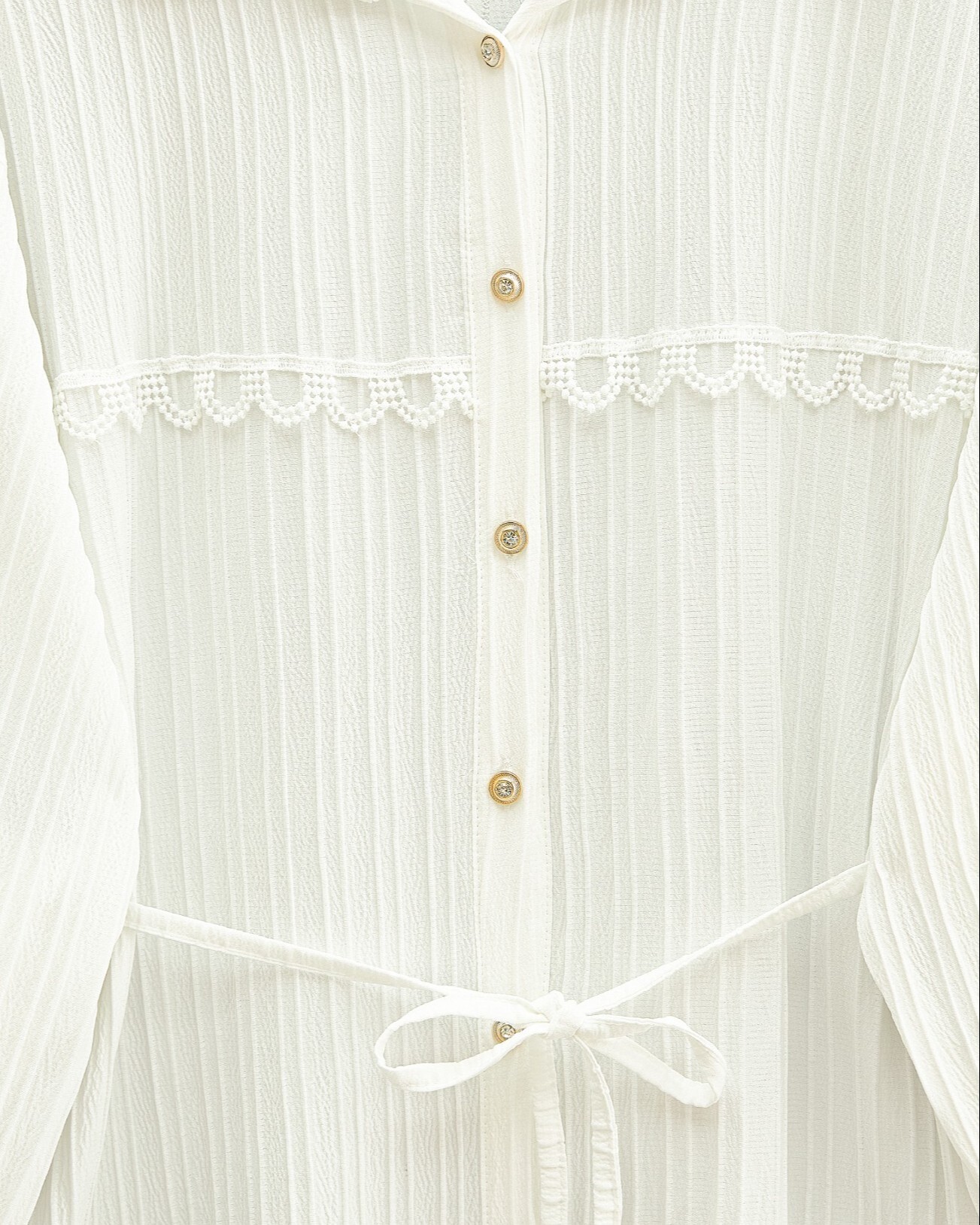 قميص طويل مطرز بالترتر من الأمام -ريشي