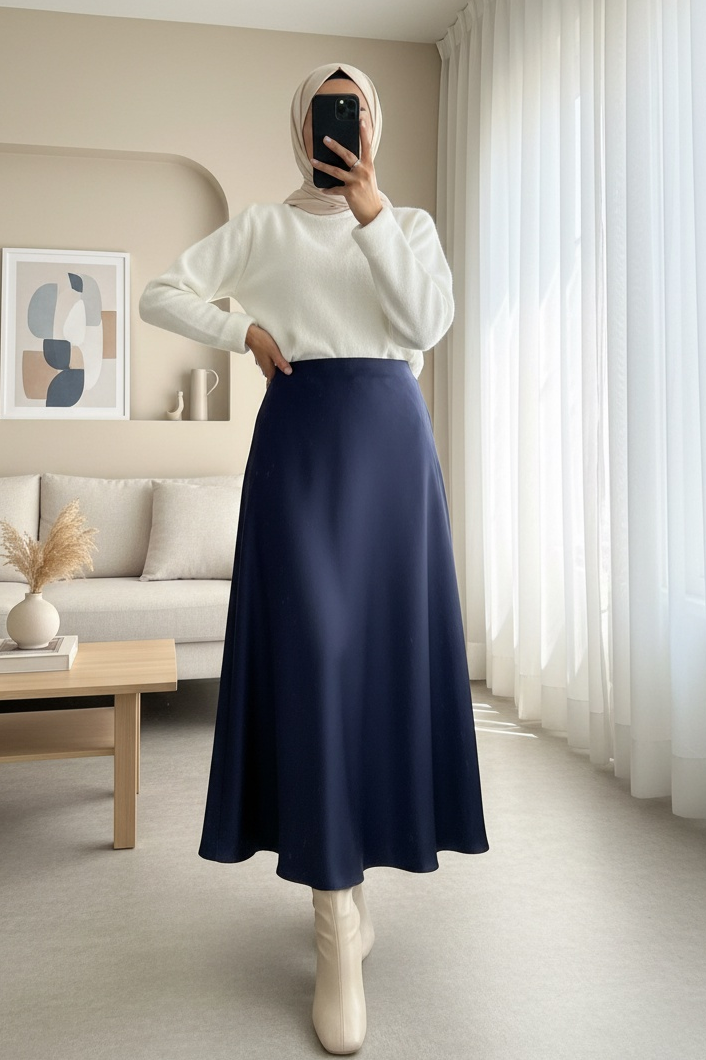 İthal Likralı Krep Kumaş Kiloş Çan Etek -كحلي