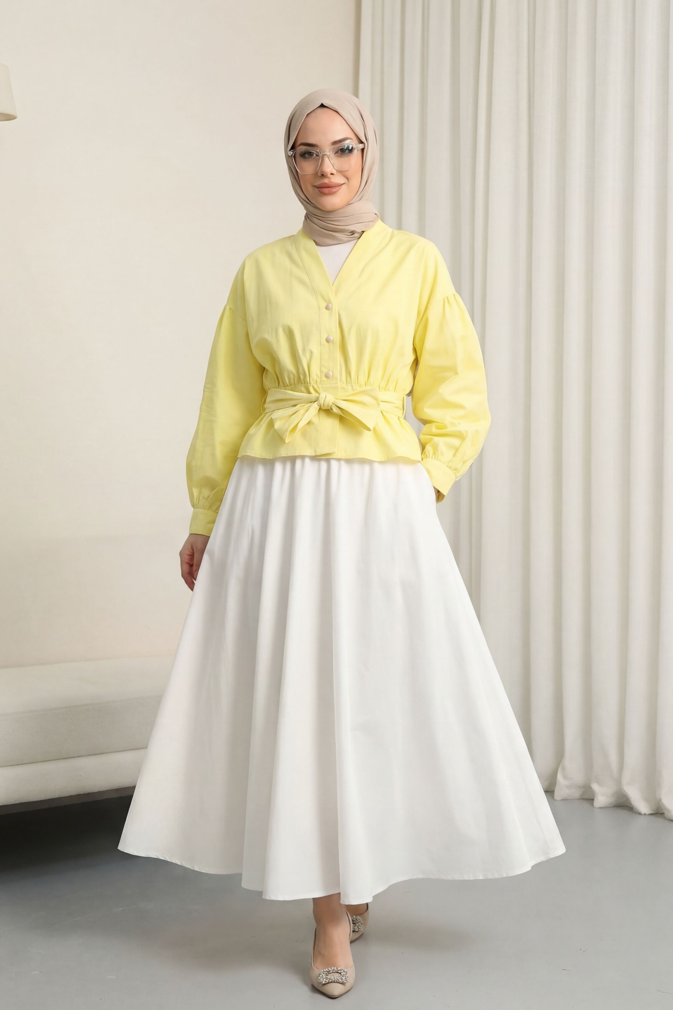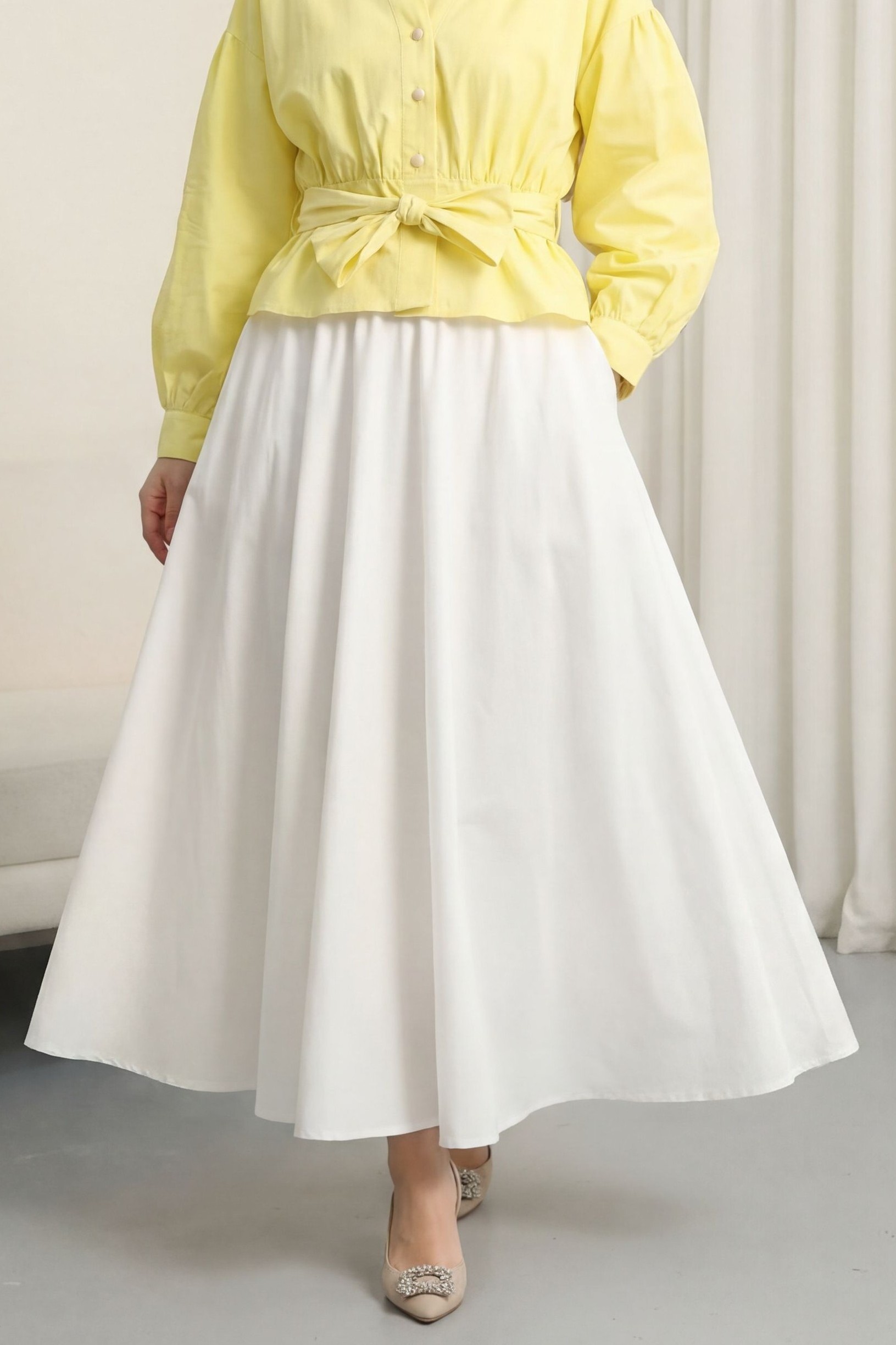 تنورة صيفية واسعة مبطنة بسحاب من الكتان -أبيض