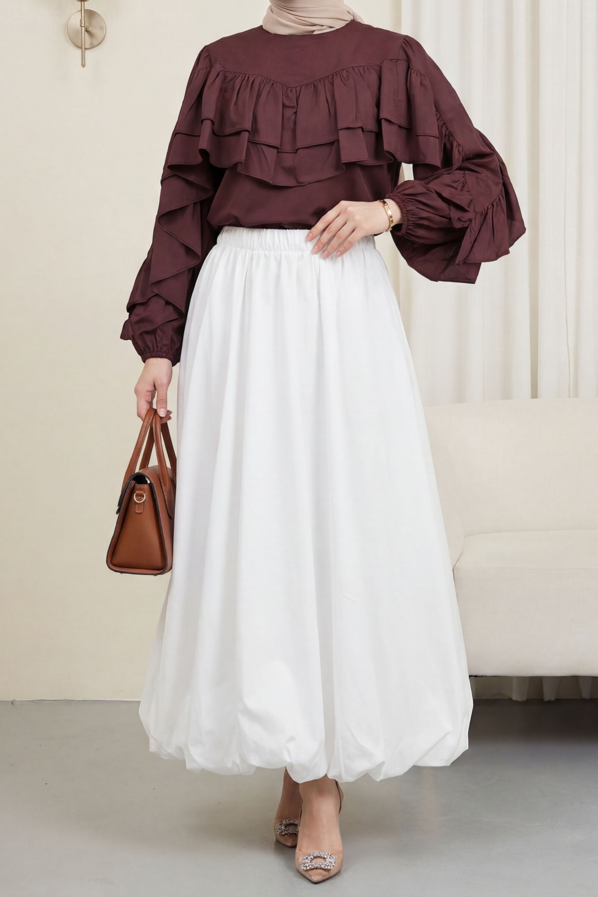 تنورة بالون من قماش البوبلين مبطنة بحزام خصر مطاطي -أبيض