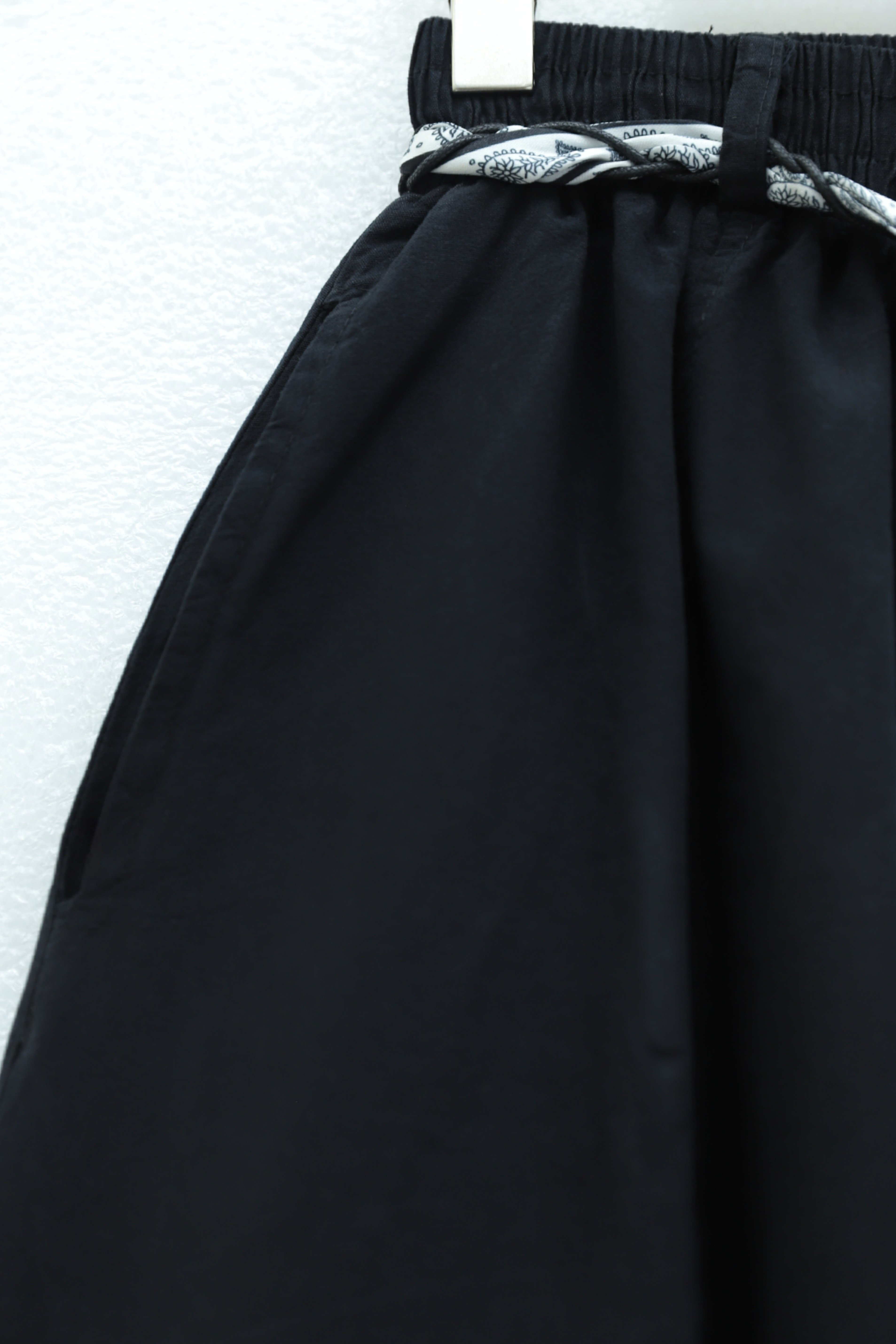 تنورة من الكتان بحزام خصر مطاطي وحزام وجيوب -أسود