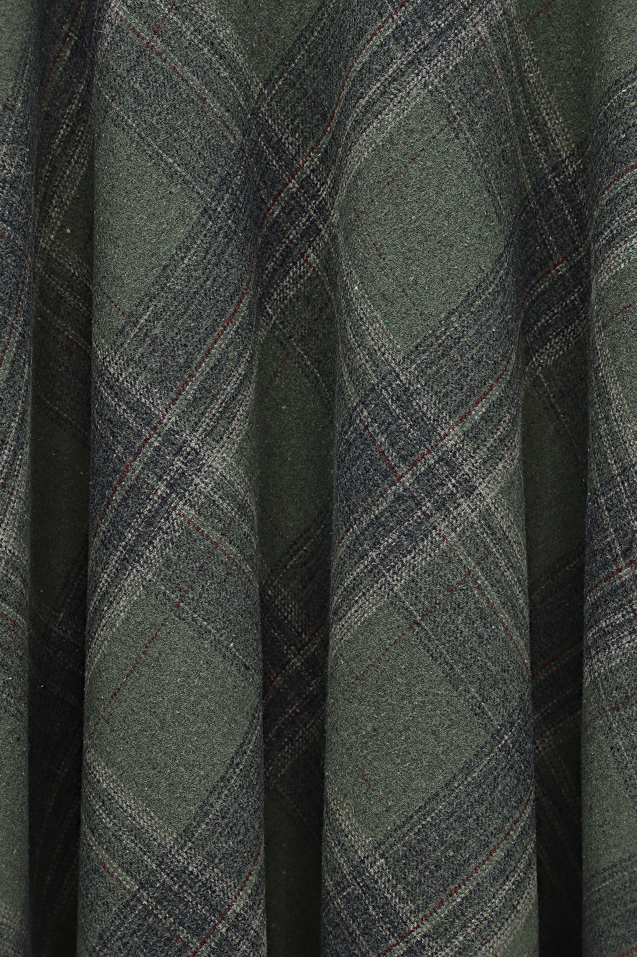 تنورة من الكشمير بقصة حرف A وسحاب جانبي بنقشة مربعات -خاكي