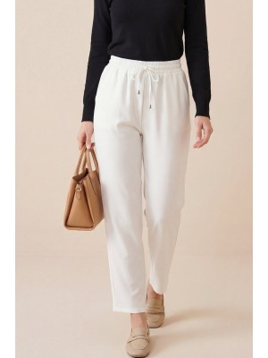 بنطلون بأرجل نحيفة مع دانتيل على الخصر -أبيض