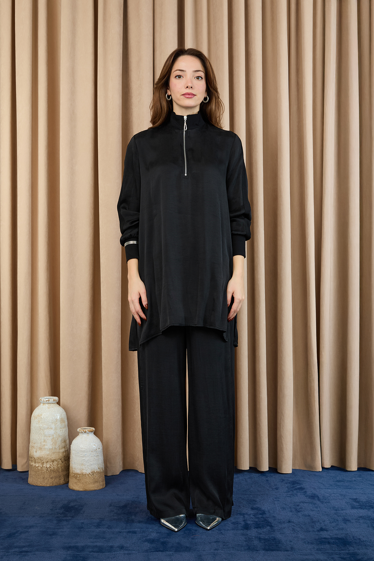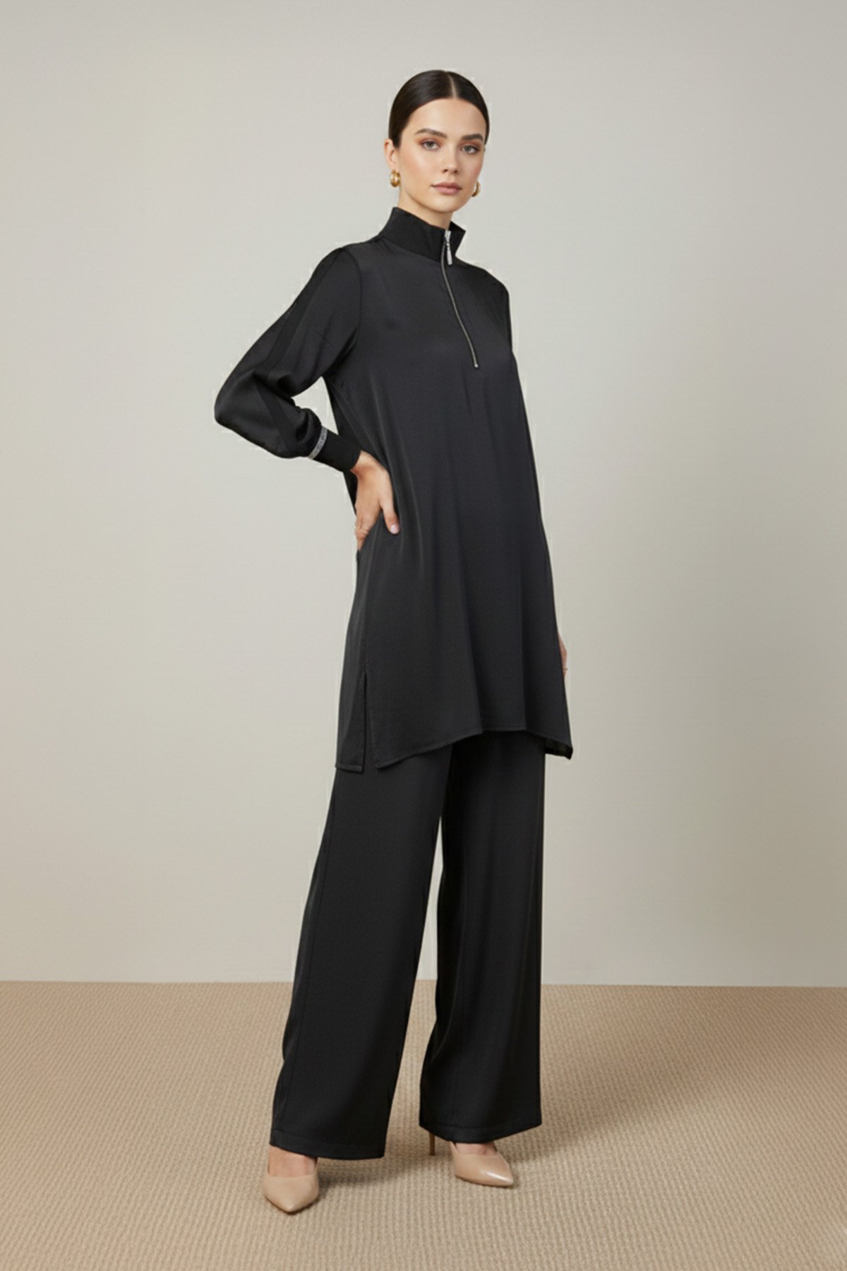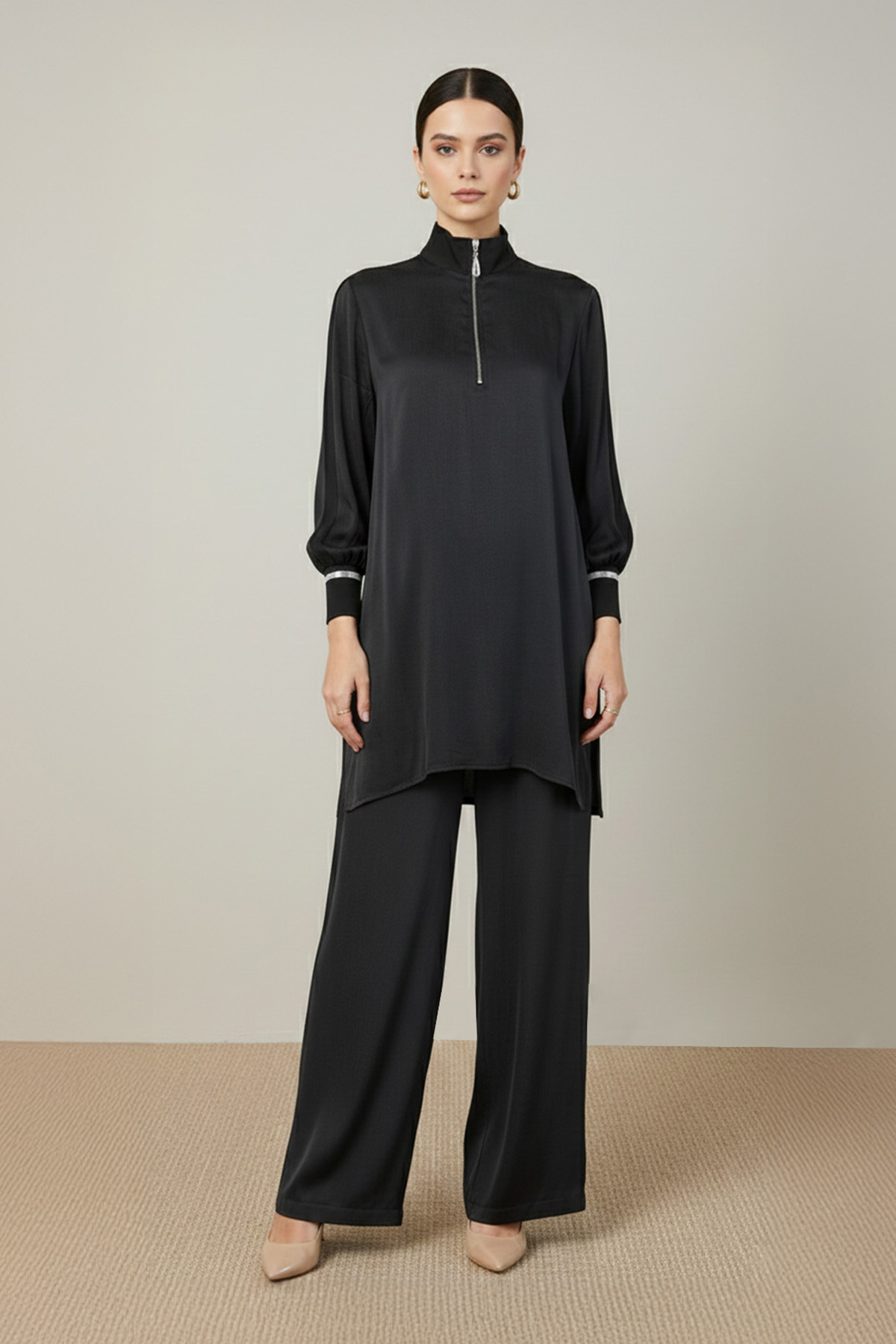 تتميز هذه المجموعة بتصميمها البسيط وتفاصيل السحاب، مما يوفر أسلوبًا عصريًا ومريحًا. يوفر ملمسها الناعم راحة طوال اليوم، بينما تضفي أناقتها البسيطة لمسة جمالية على أي إطلالة.