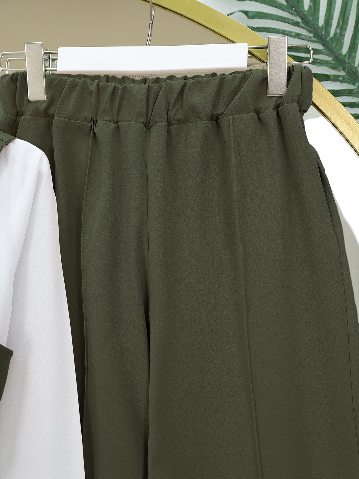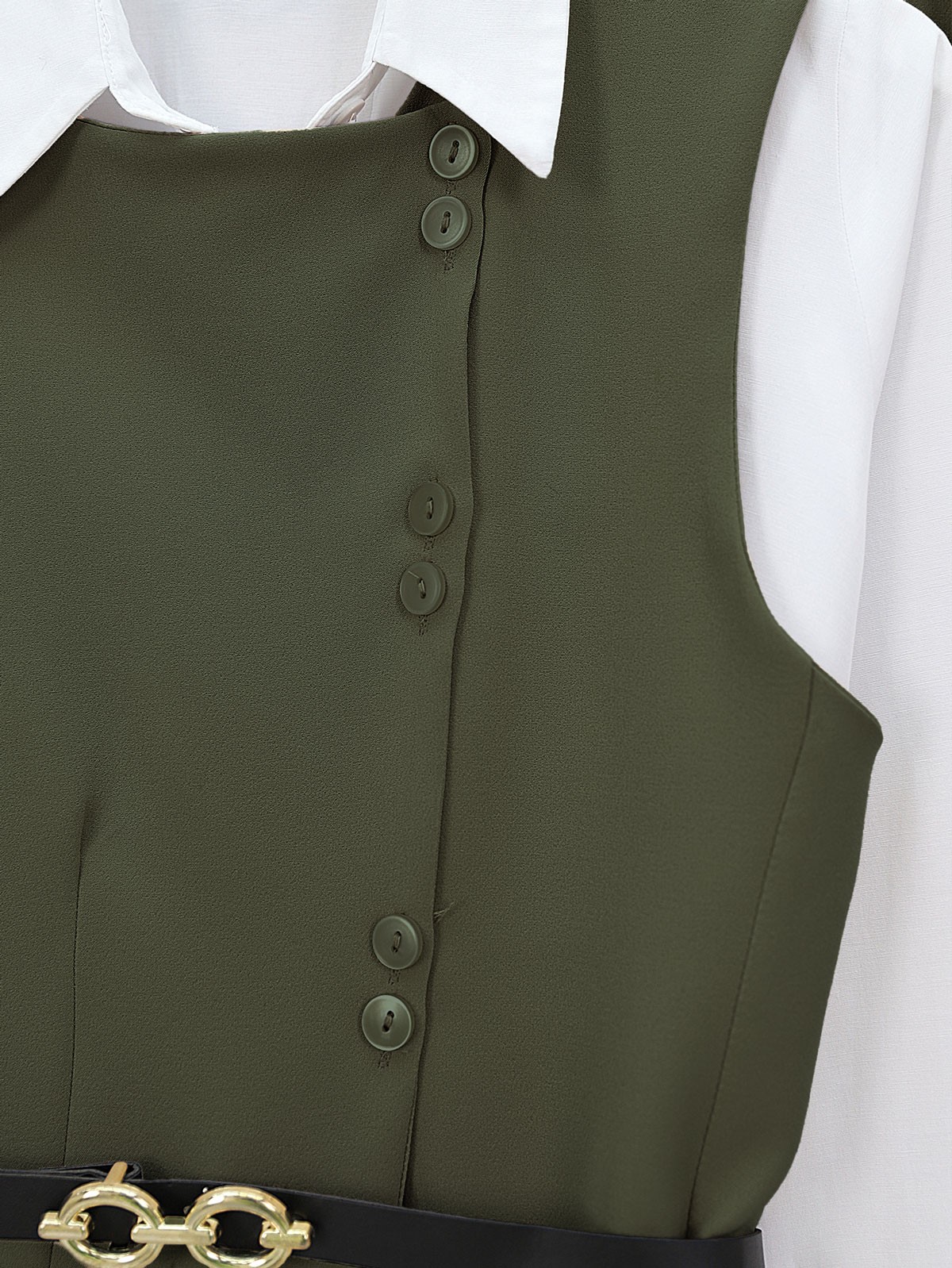 طقم سترة طويلة وبنطلون مع حزام وأزرار -خاكي - 349-6095-R05