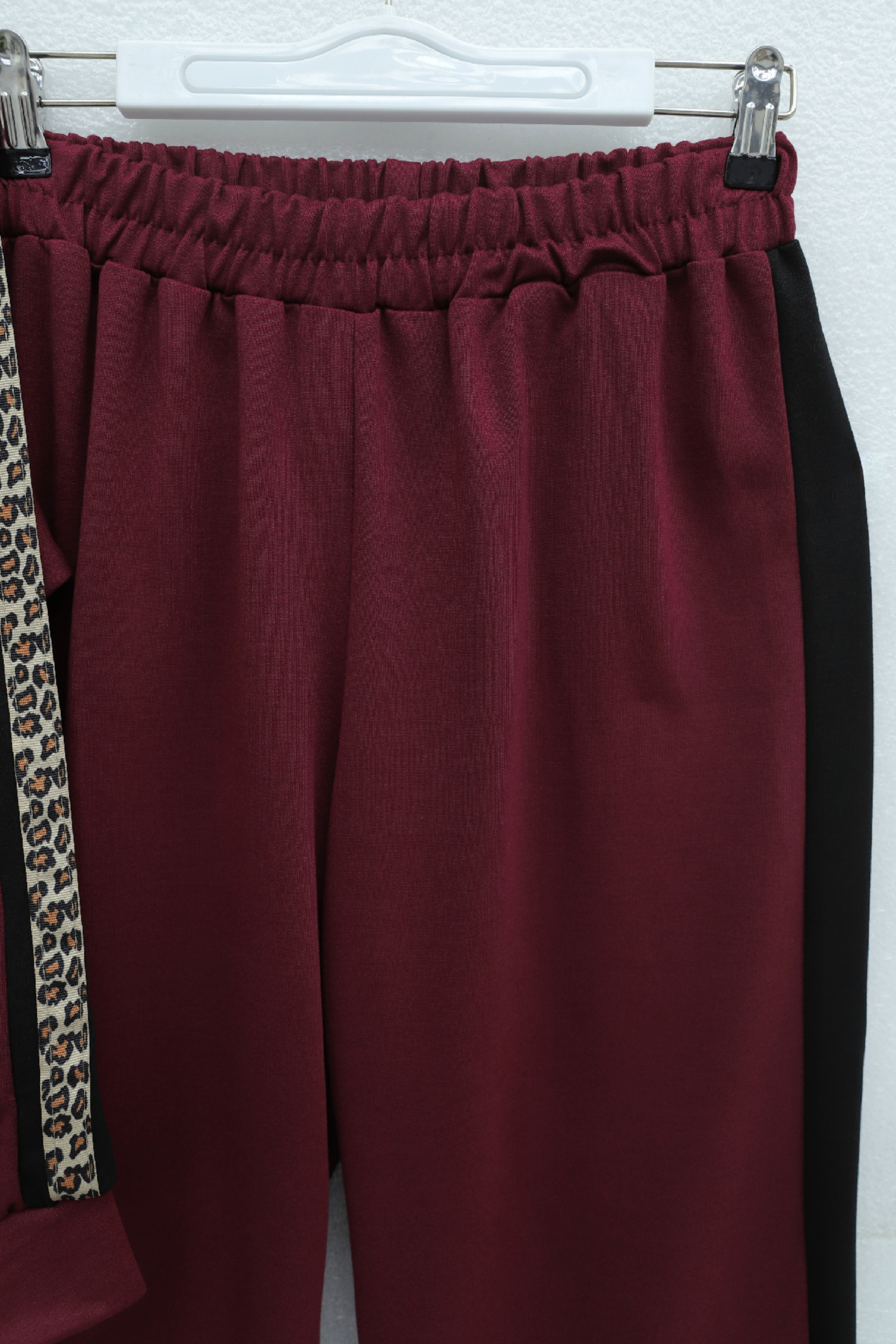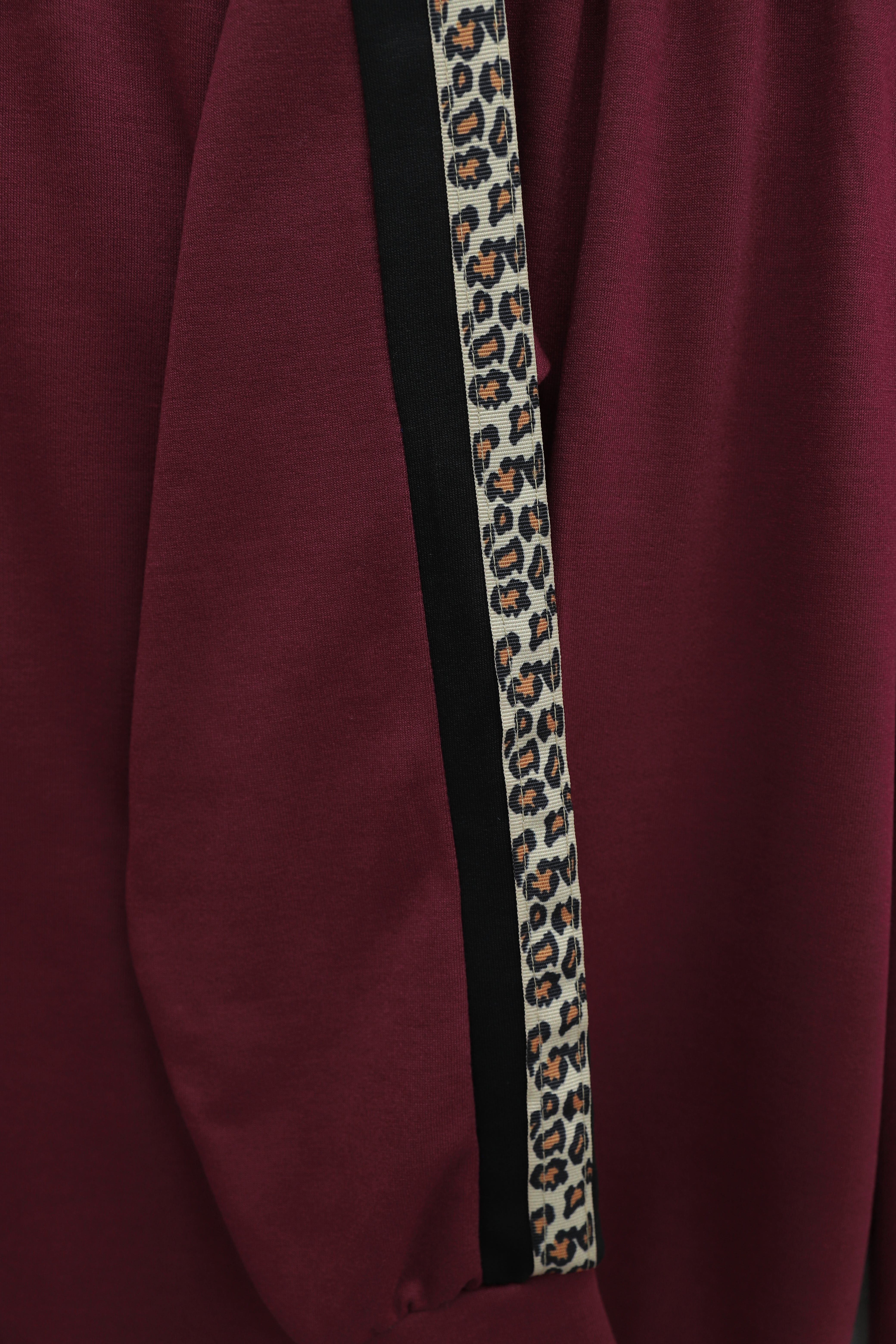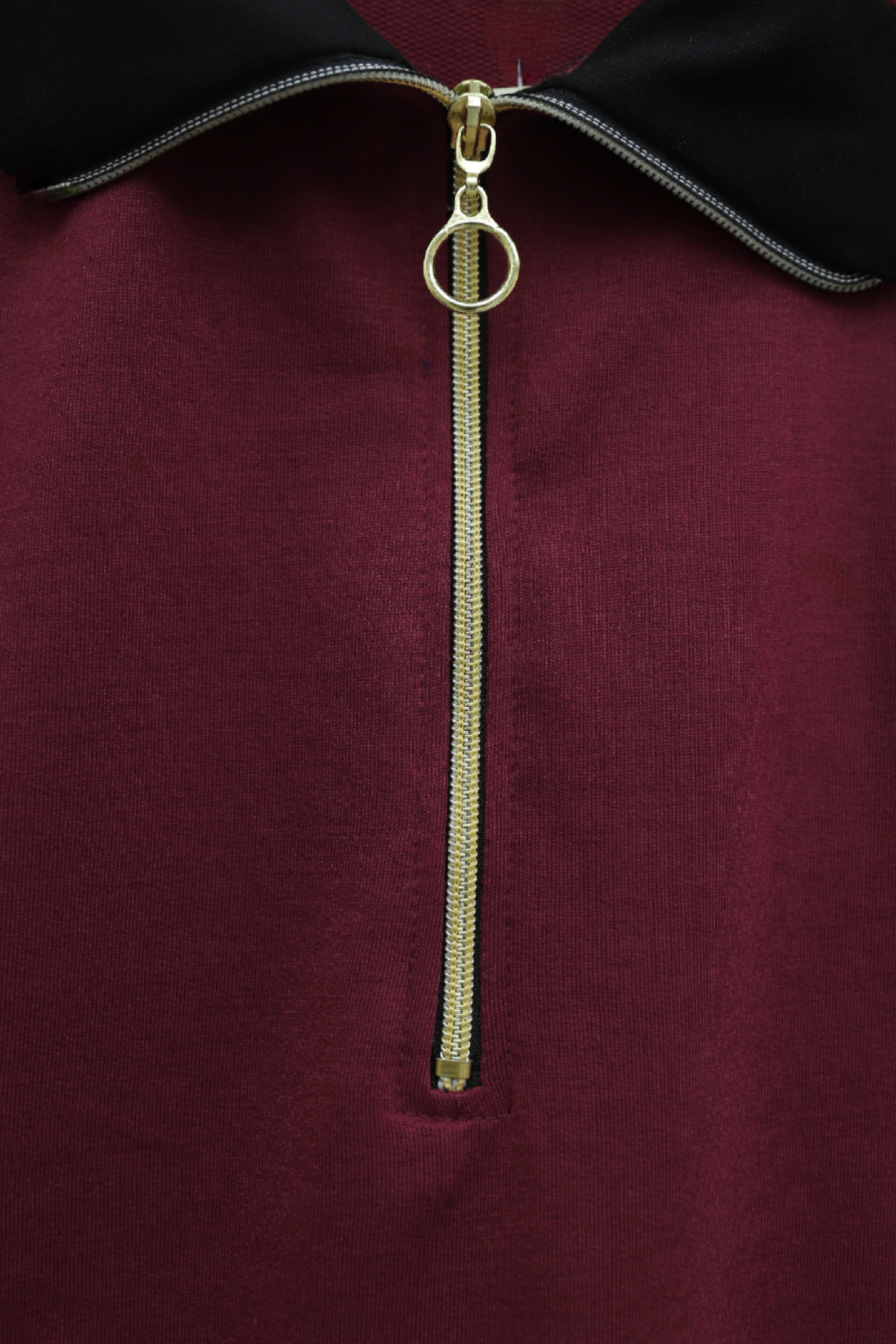 طقم جيرسي بياقة وسحاب نصفي وجوانب منقوشة -بوردو