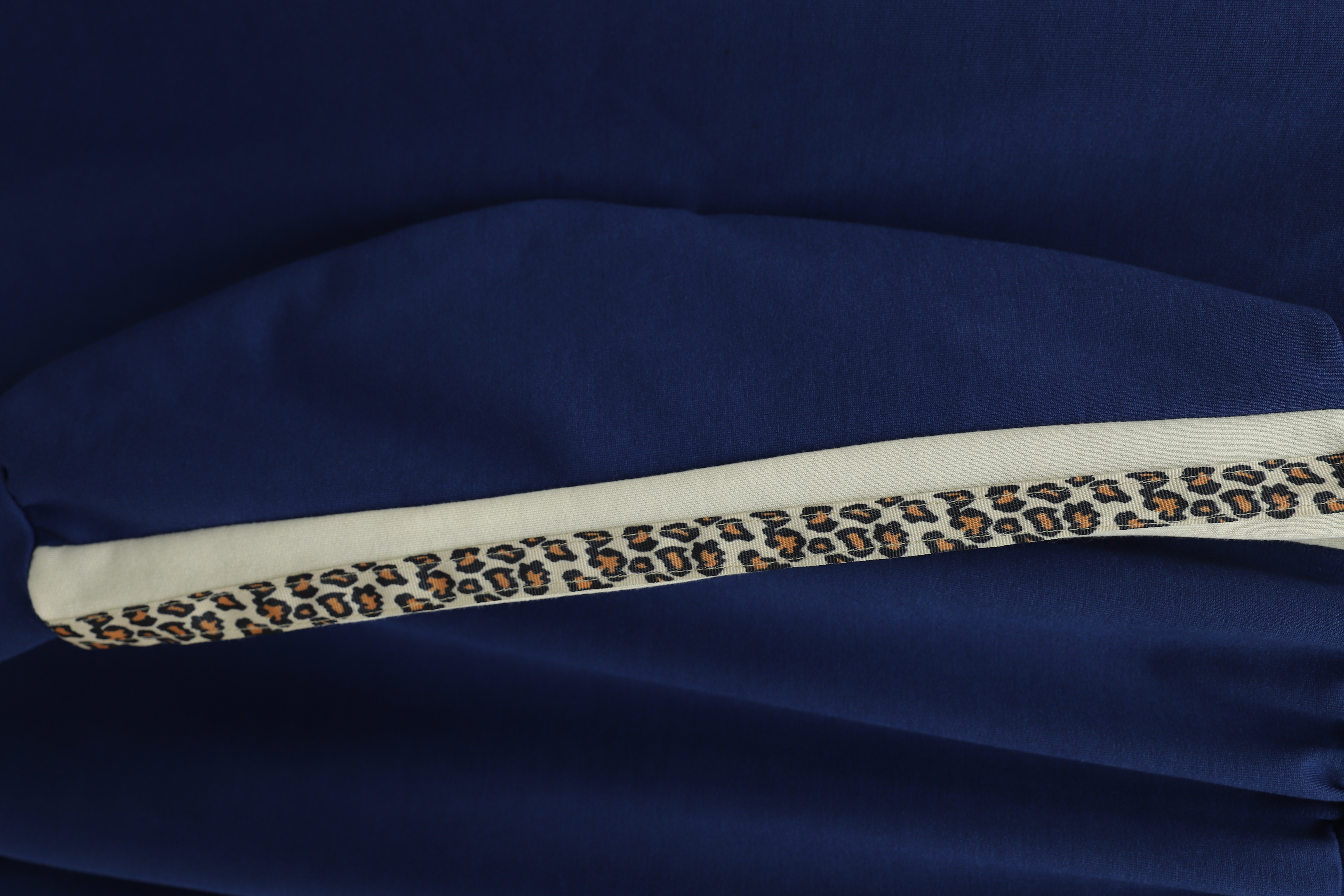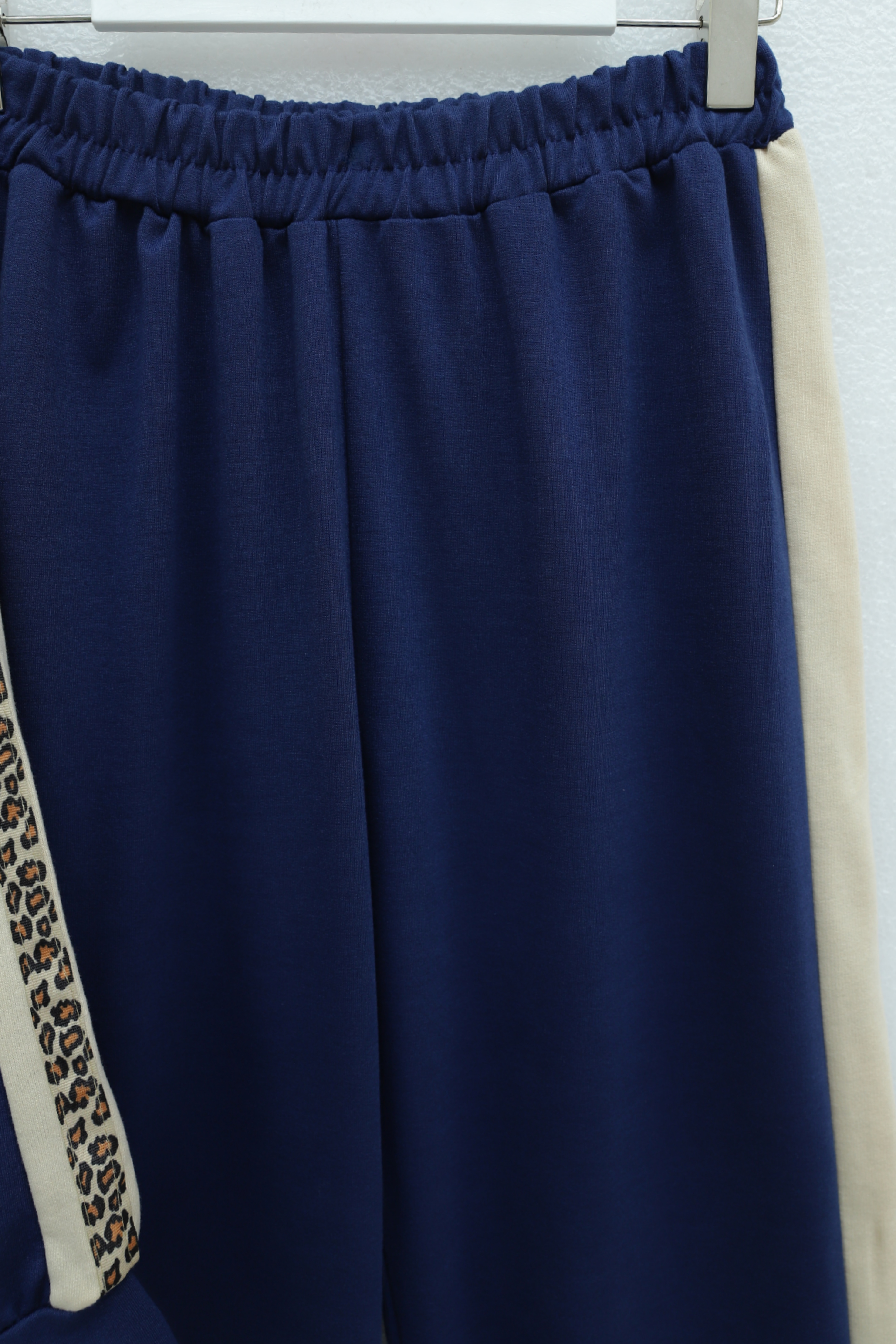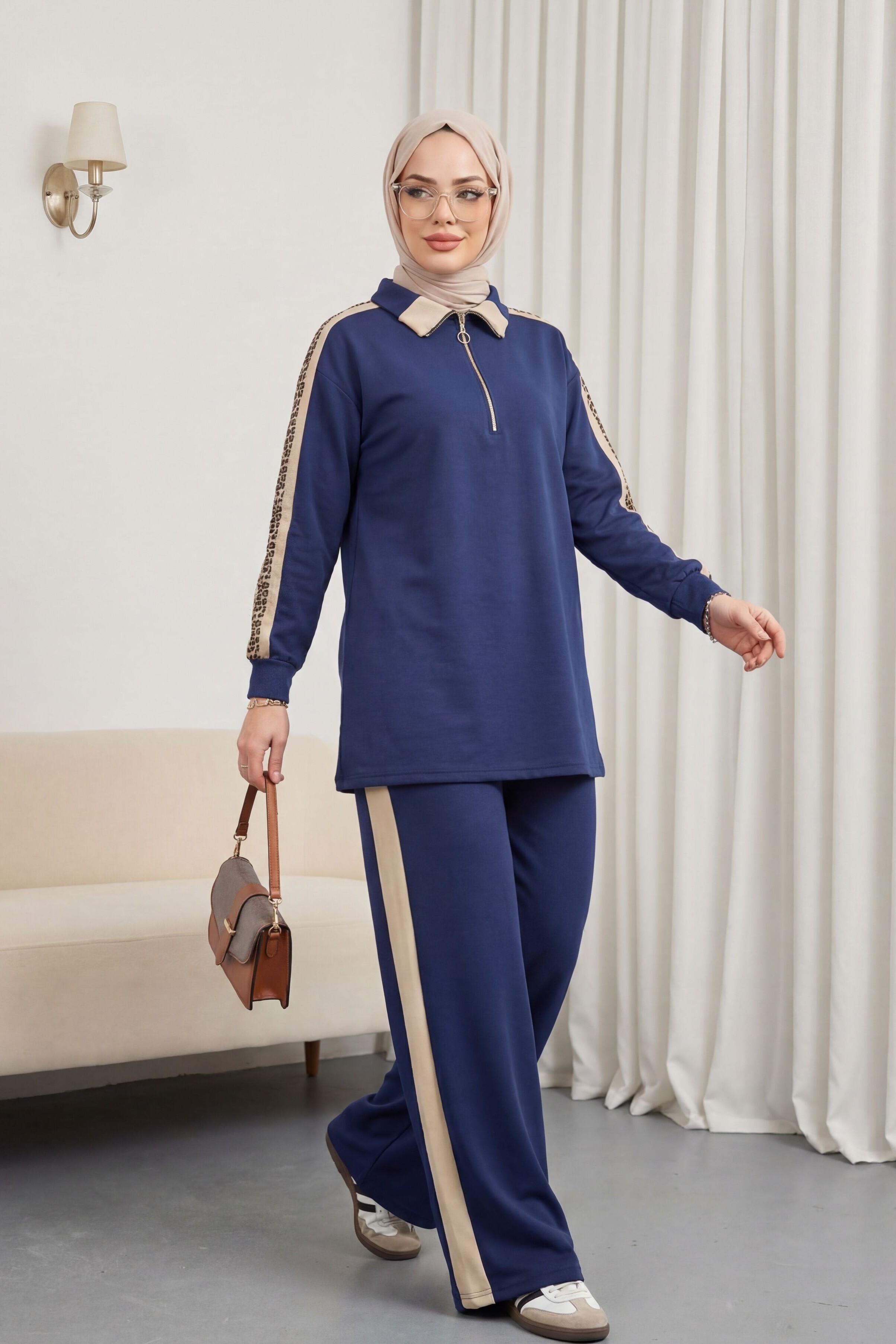 طقم جيرسي بياقة وسحاب نصفي وجوانب منقوشة -كحلي