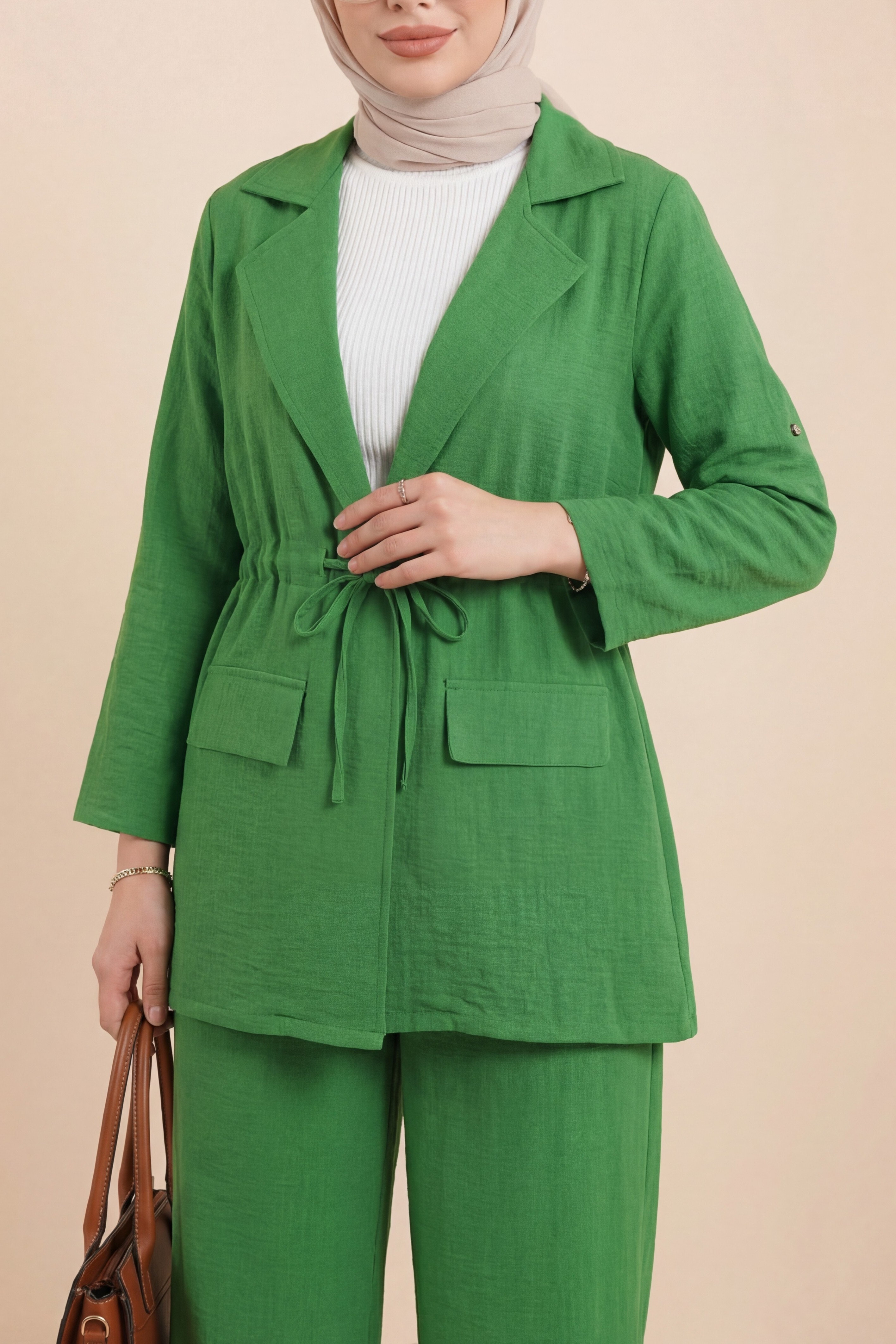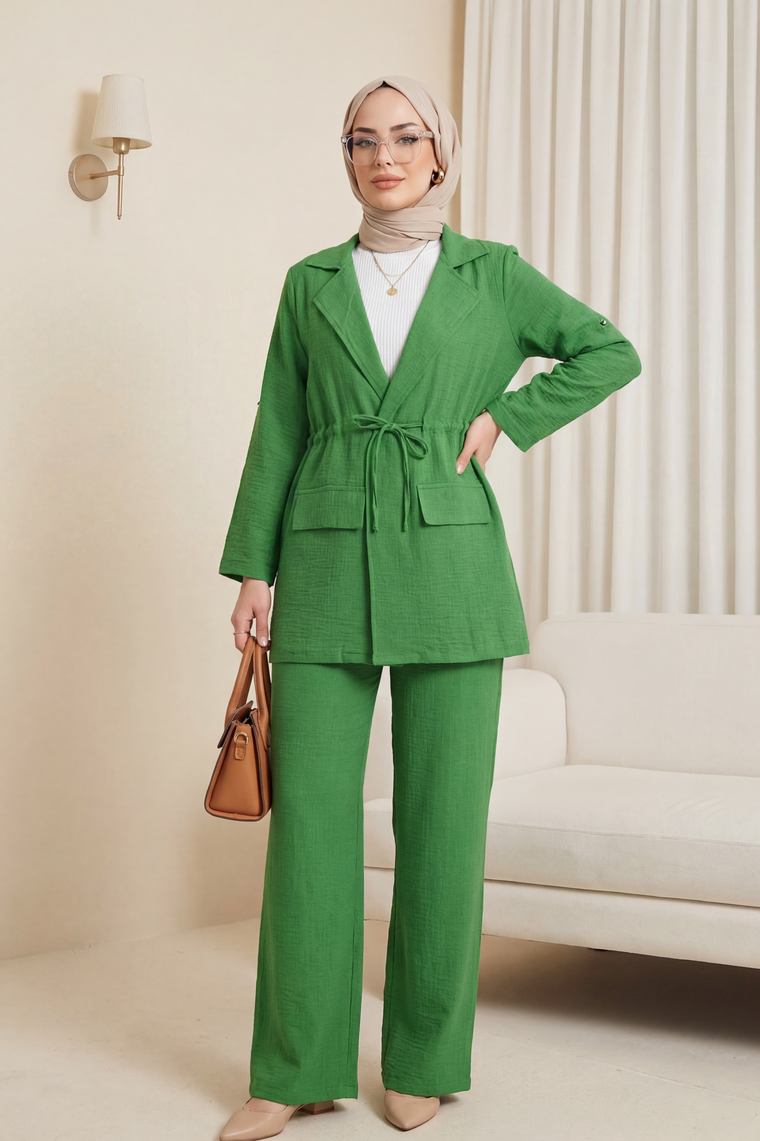 بدلة الكتان مع سترة بتفاصيل جسر النفق والجيوب المغطاة تقدم مظهرًا عصريًا وأنيقًا. تضيف تفاصيل جسر النفق والجيوب المغطاة في السترة لمسة من الرقي على التصميم، بينما يوفر قماش الكتان خفة وراحة، مما يجعله خيارًا مثاليًا. يوفر الراحة في الأجواء الحارة ويبرز أناقتك في نفس الوقت. مناسب للاستخدام اليومي والمناسبات الخاصة، يتيح لك هذا الزي الحصول على مظهر أنيق ومريح في آن واحد. اكتشف الأناقة العصرية مع بدلة الكتان مع سترة بتفاصيل جسر النفق والجيوب المغطاة!